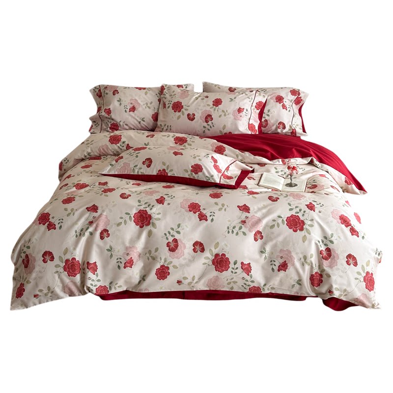 玫瑰情书中式婚礼年轻人结婚四件套婚庆全棉数码印花长绒棉高端款