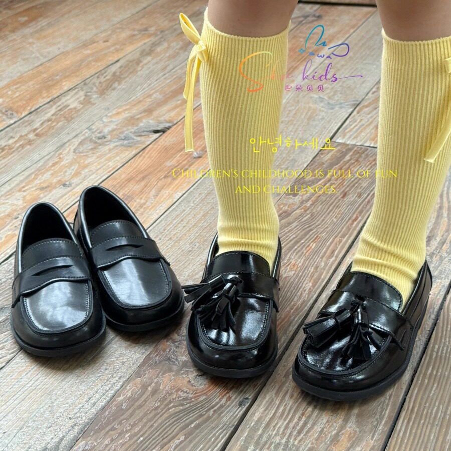 儿童黑色乐福鞋秋季复古英伦风男女童圆头学院风复古真皮单鞋皮鞋