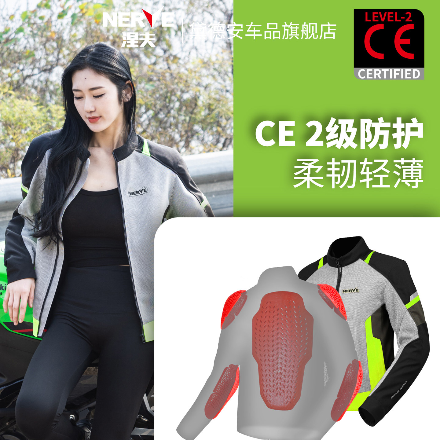 NERVE涅夫极光夏季摩托车骑行服男款机车赛车服网眼透气CE2级护具