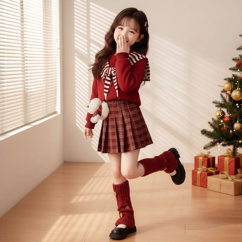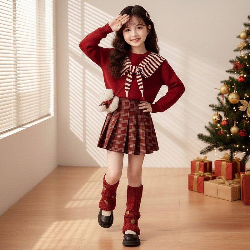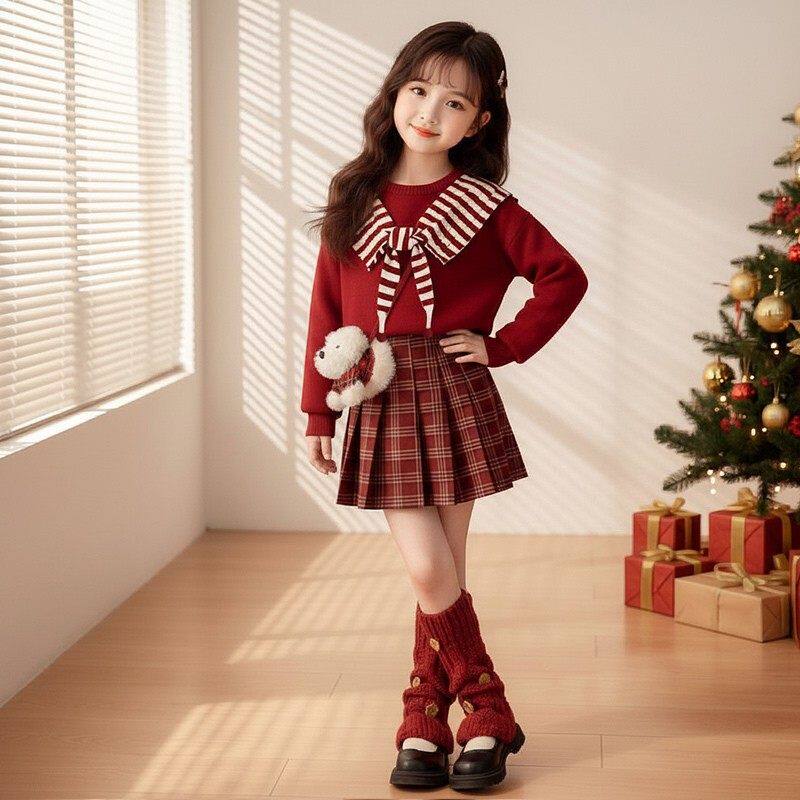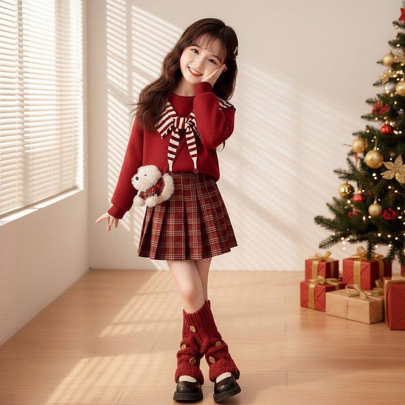 女童裙子冬装2025新款女大童圣诞新年衣服高级感富家小千金连衣裙