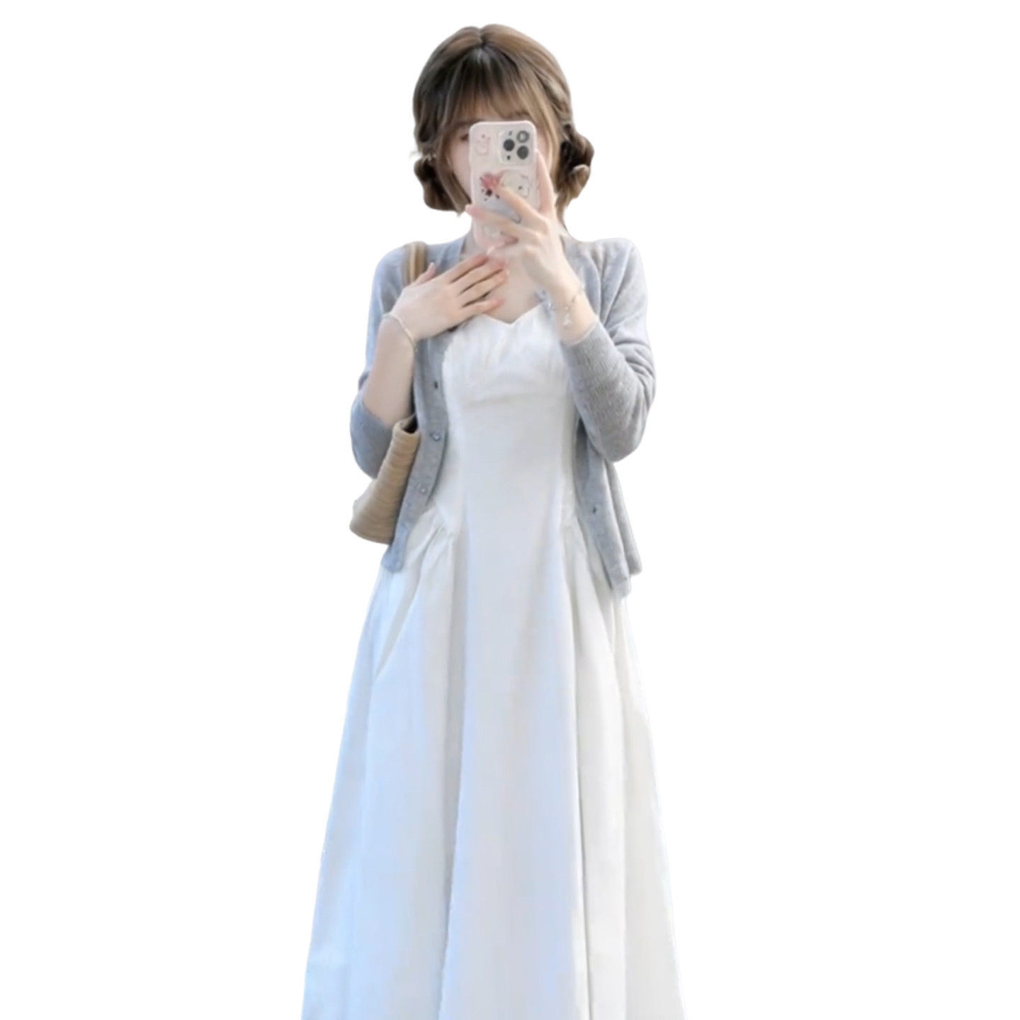 2026新款早春季白色吊带连衣裙子女夏小个子独特漂亮穿搭套装长裙