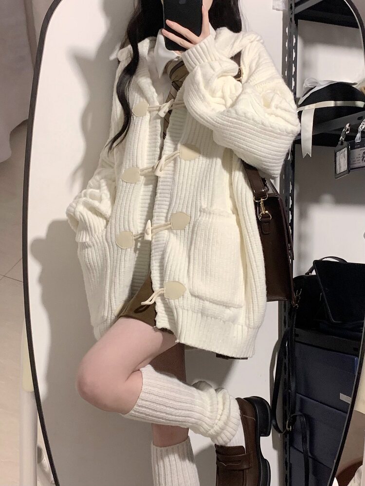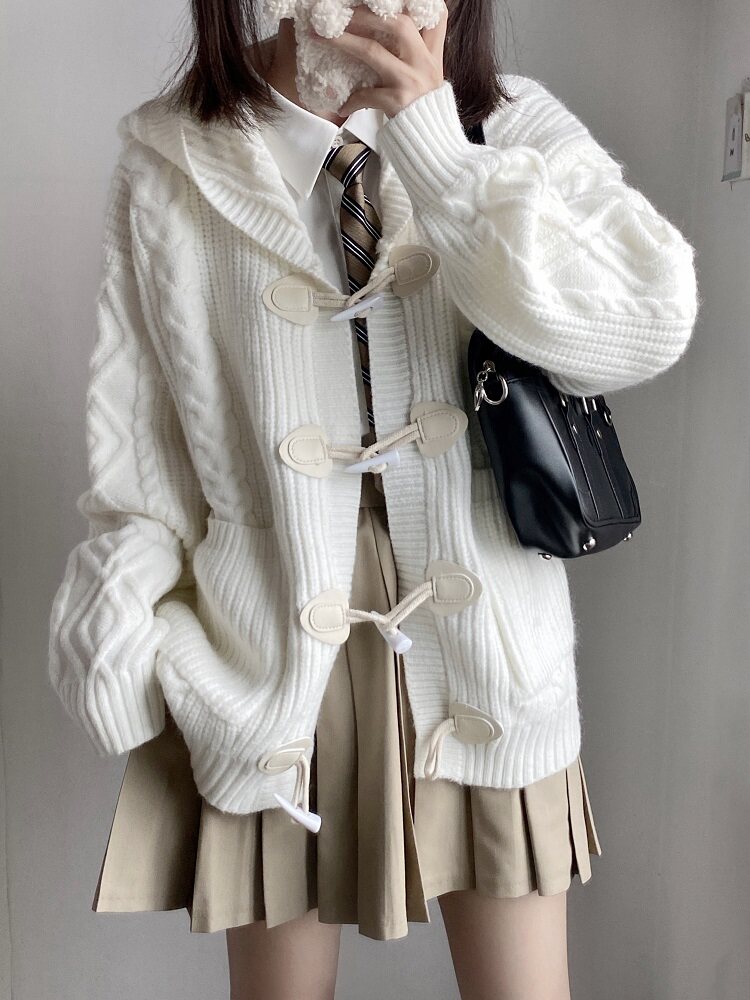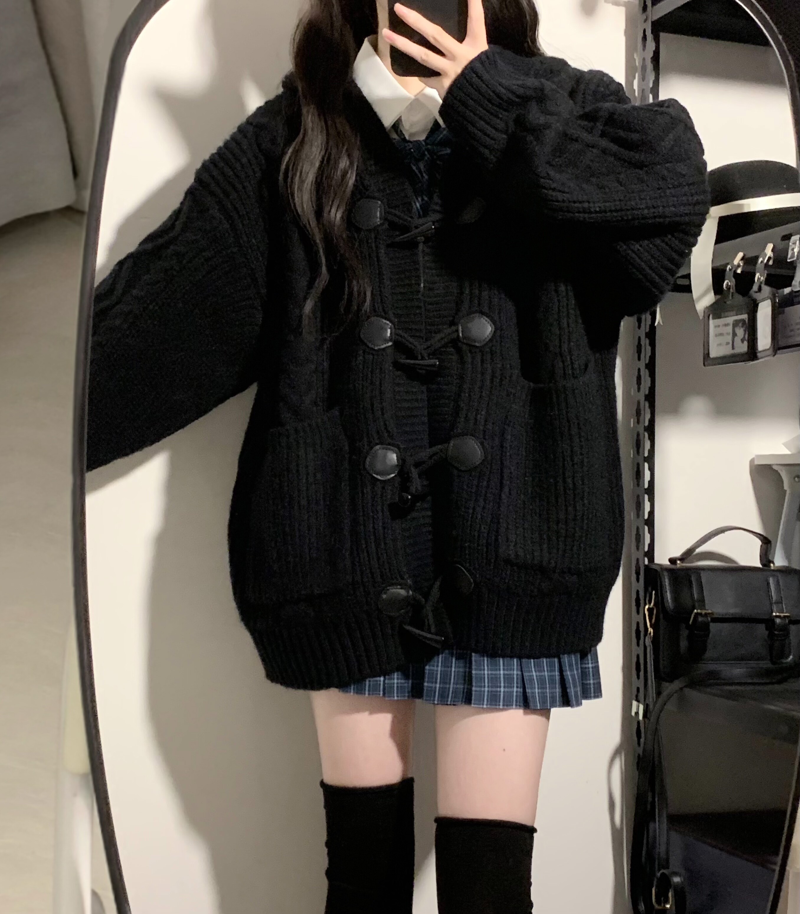 【神仙club】原创牛角扣学院风毛衣连帽宽松加厚慵懒开衫外套女冬