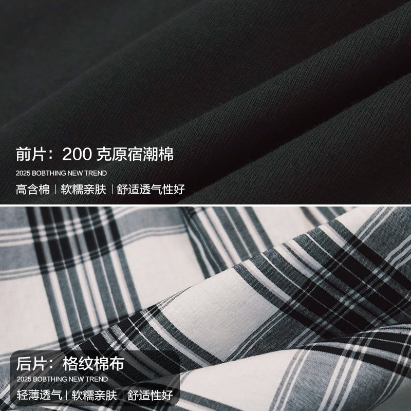 男童夏装2025新款儿童装针织格子拼布短袖T恤衫中大童半袖黑体恤