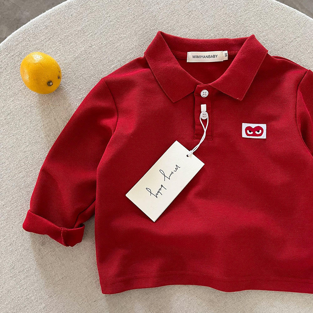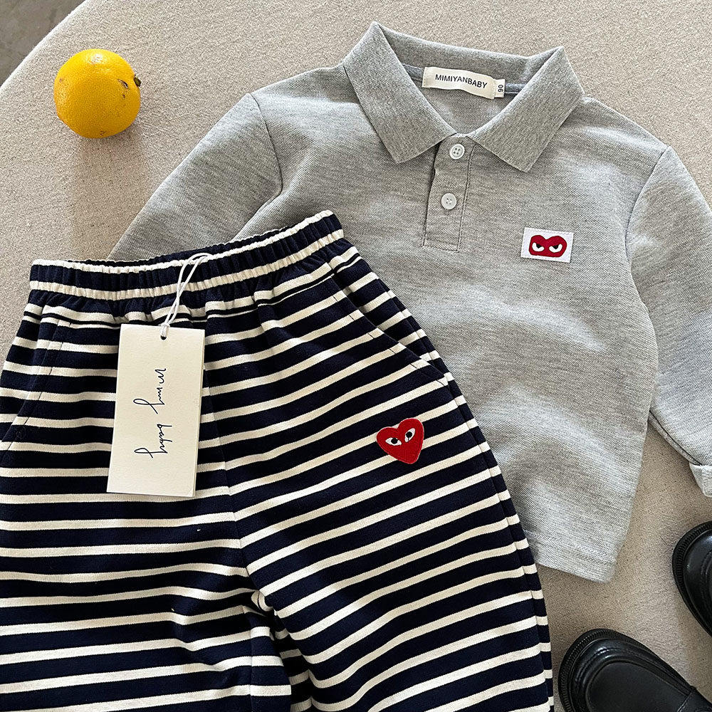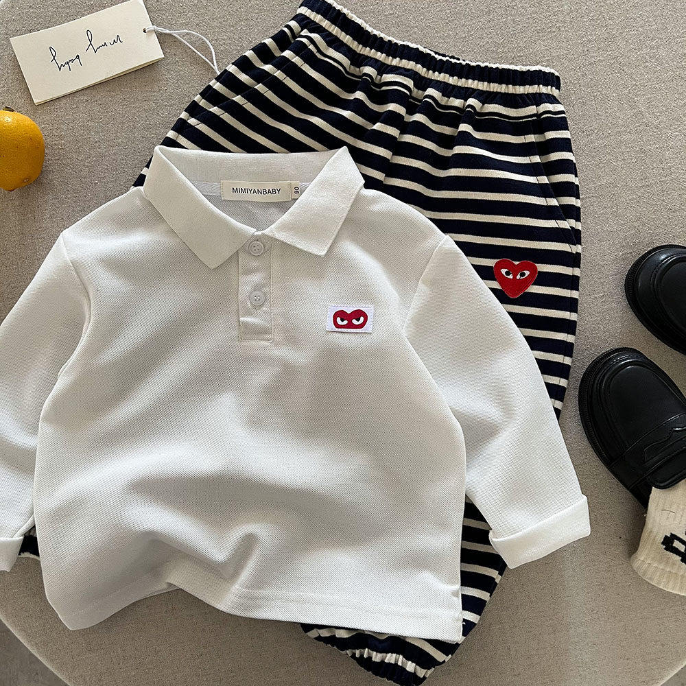 2026春秋新款儿童POLO衫薄款男童纯色上衣宽松宝宝爱心T恤女长袖