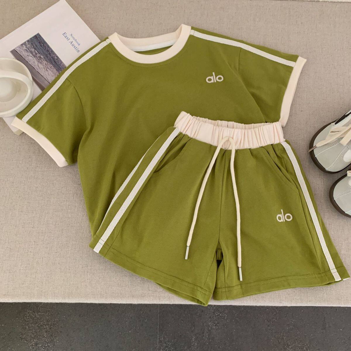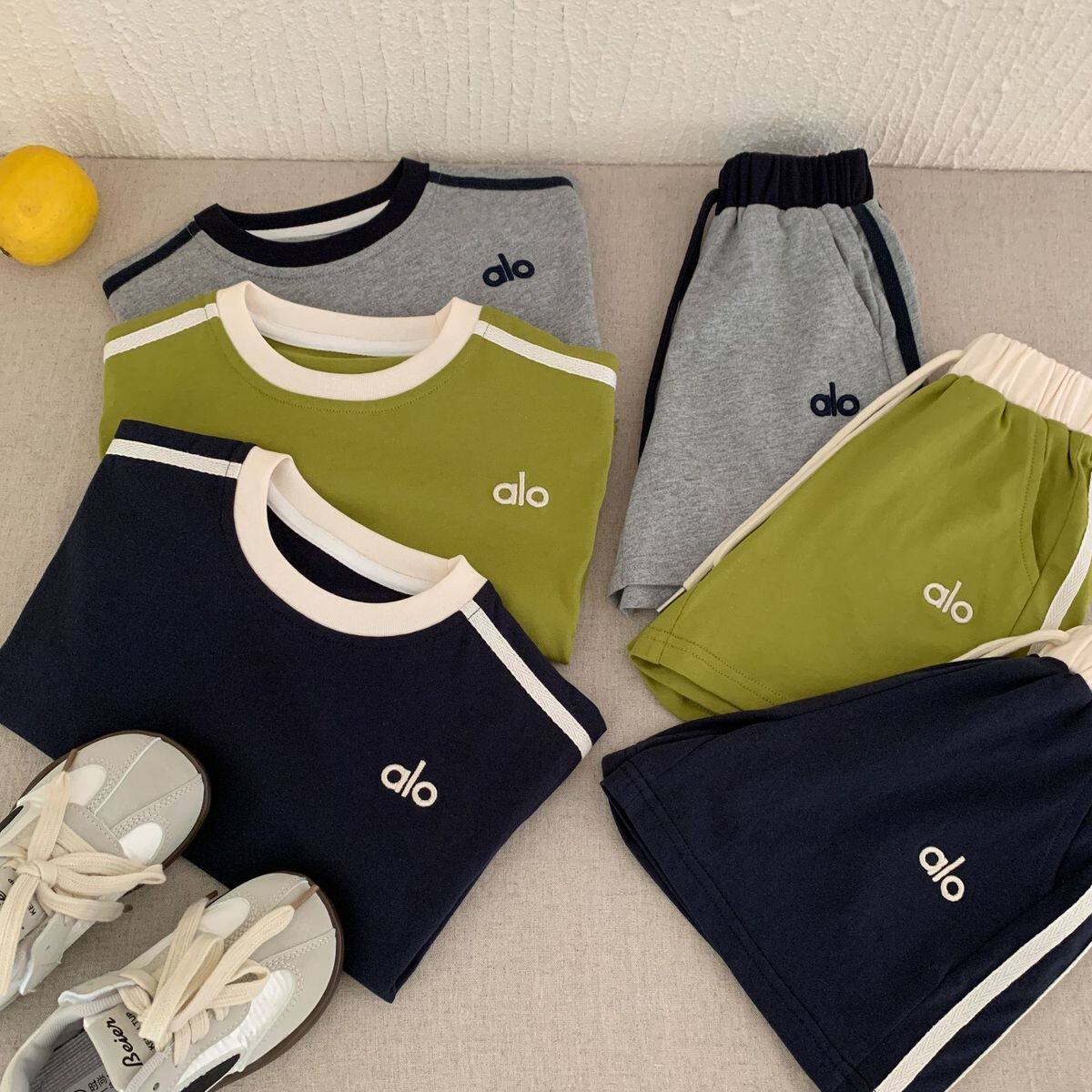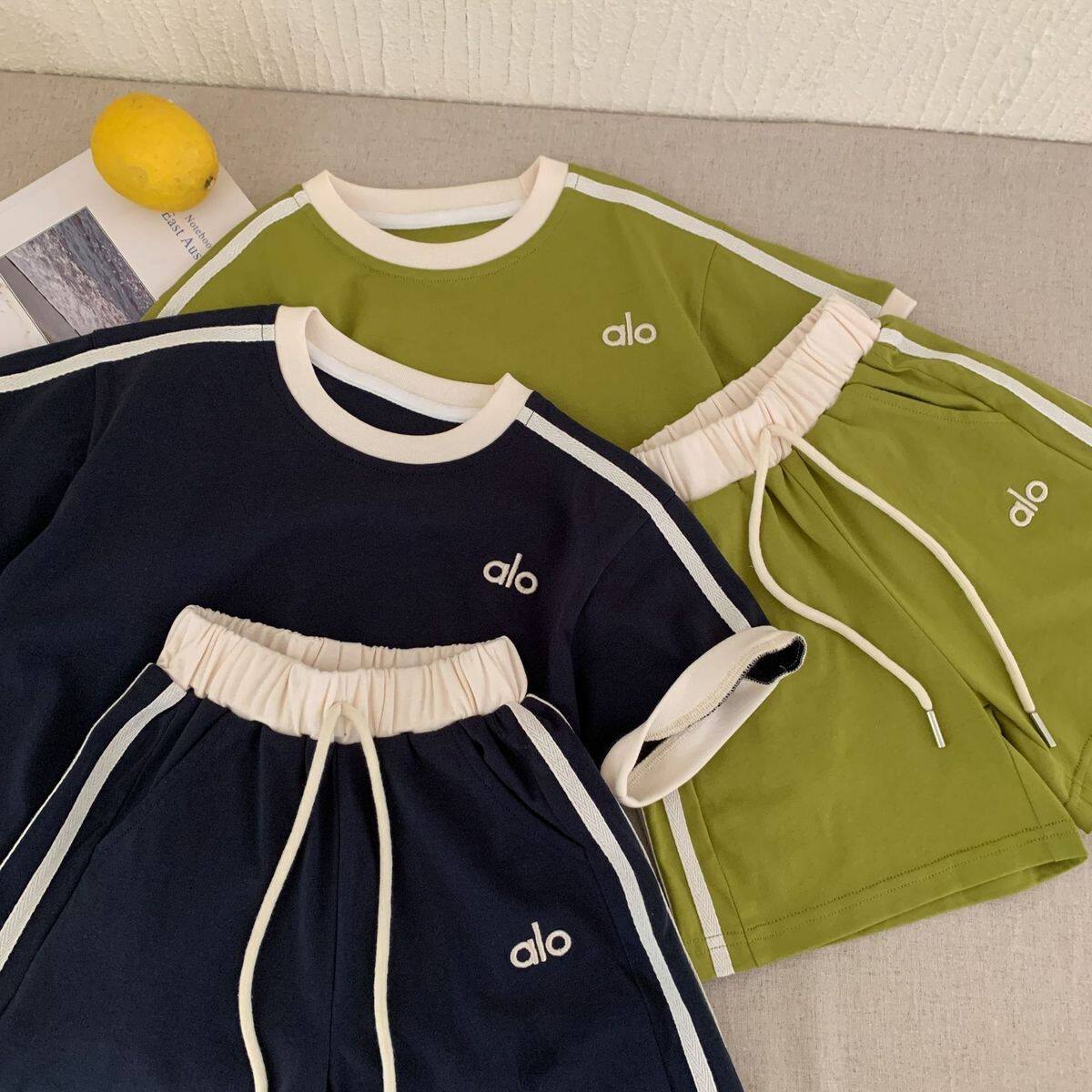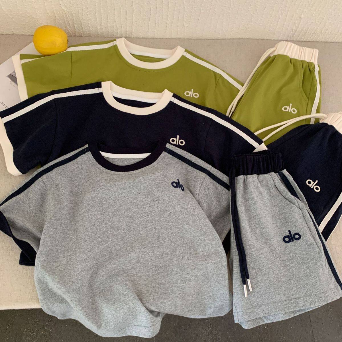 儿童夏季短袖套装2026新款男女童日系潮牌童装撞色休闲运动两件套