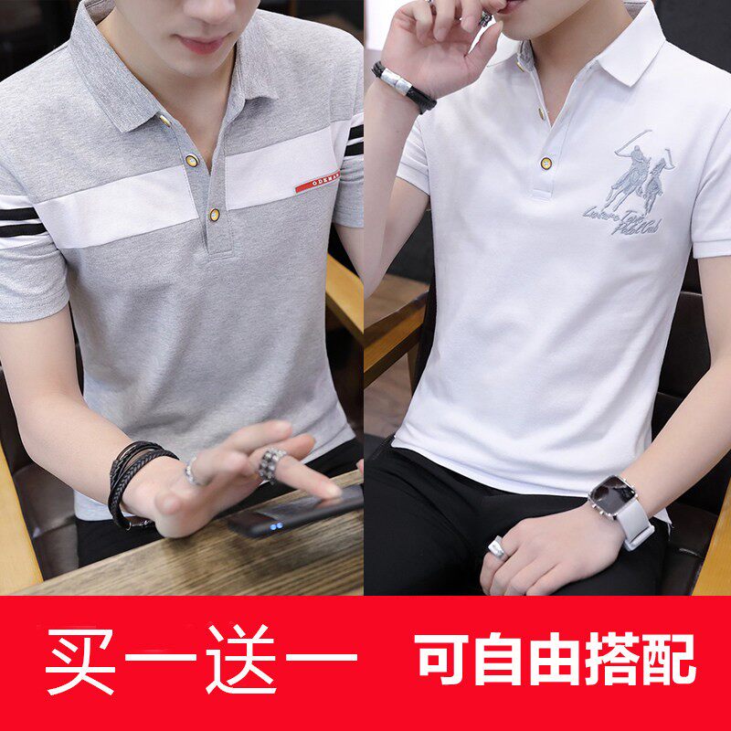 2026夏季新款短袖t恤男士polo衫 衬衫领韩版丅恤半袖修身夏装体恤