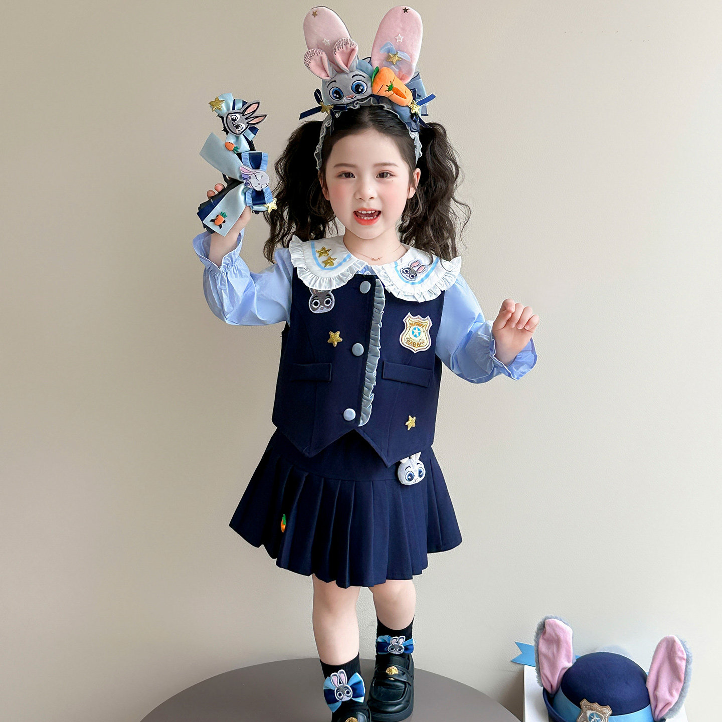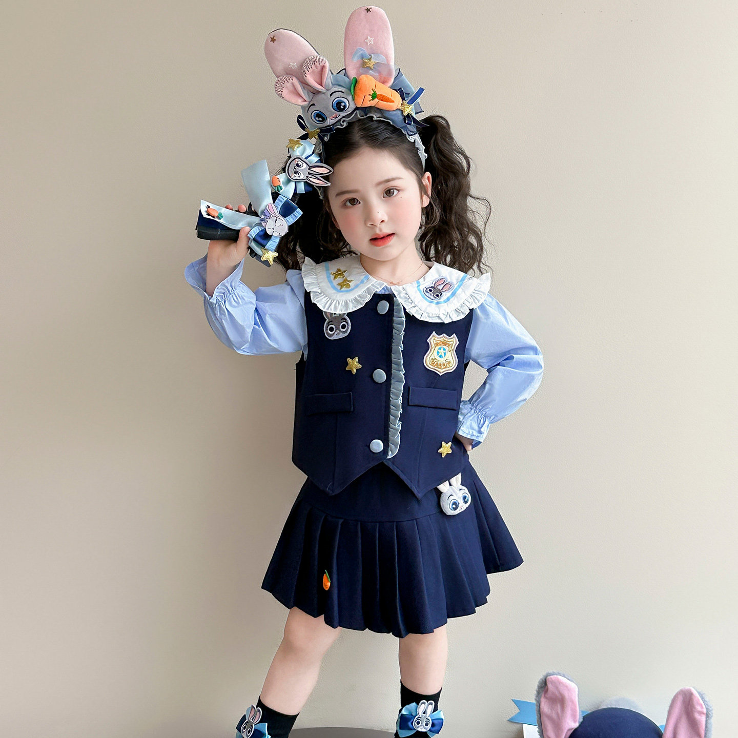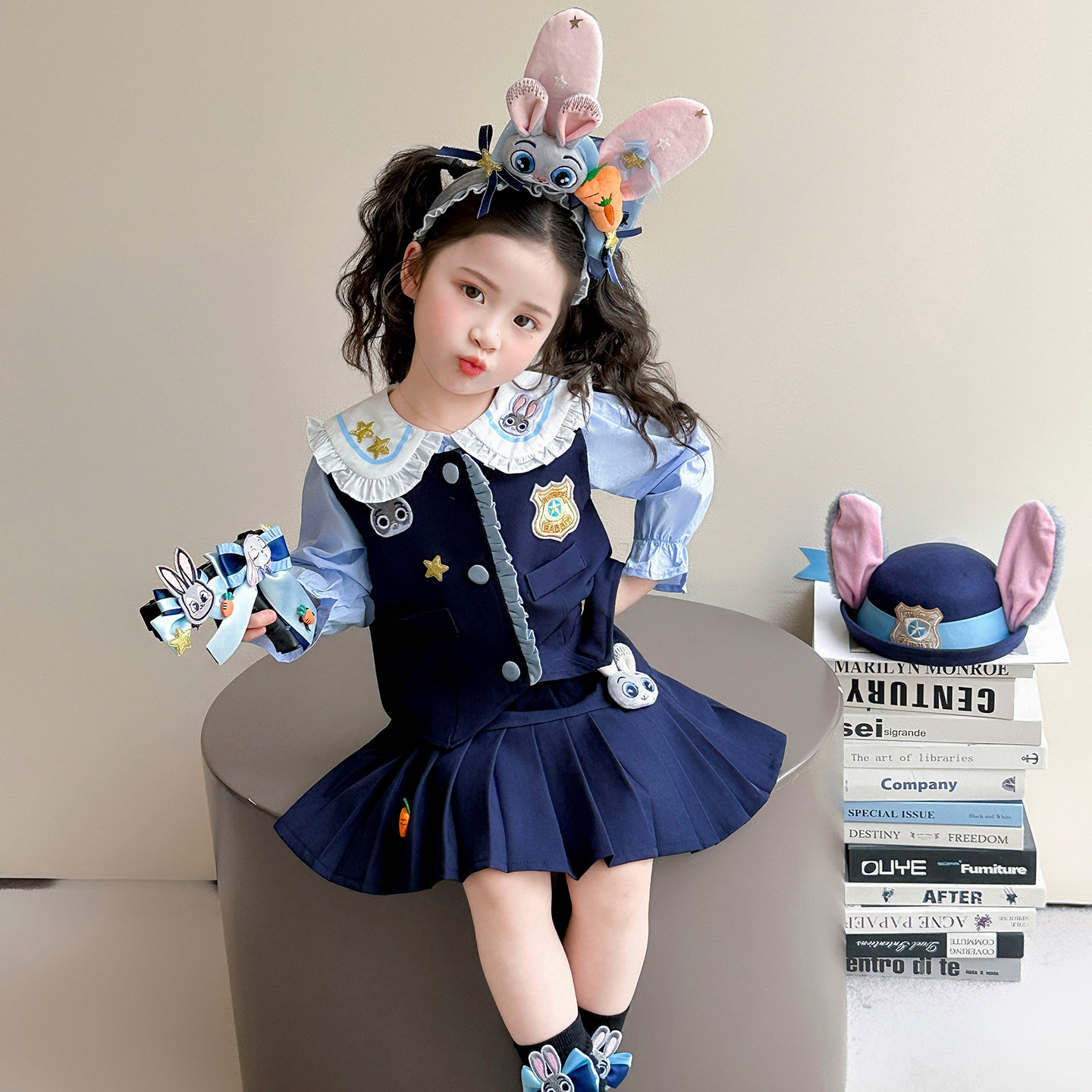 女童春秋款蓝兔裙套装2026新款洋气时髦儿童女宝宝春季春装学院风