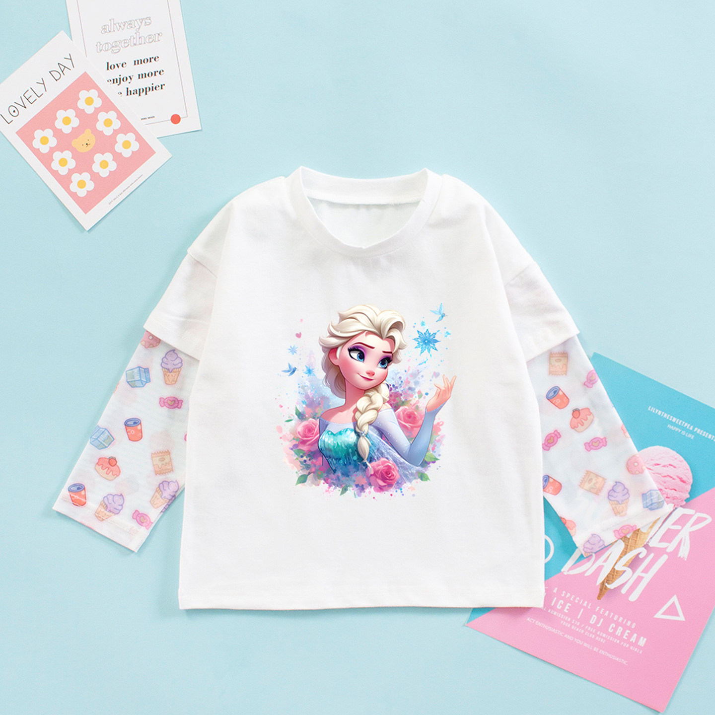 2026夏季新款女童防晒长袖T恤儿童艾莎夏装薄款上衣爱莎公主衣服