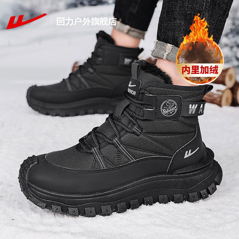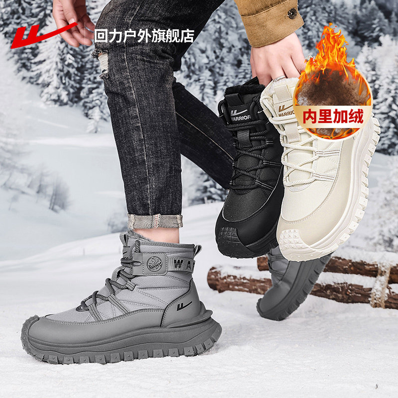 311线报网描述:回力旗舰店正品加绒加厚高帮鞋休闲棉鞋子男