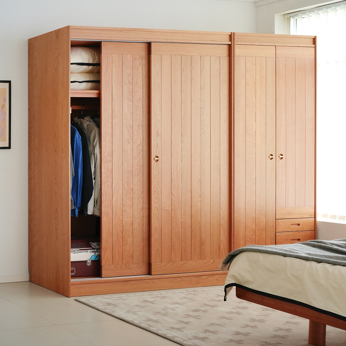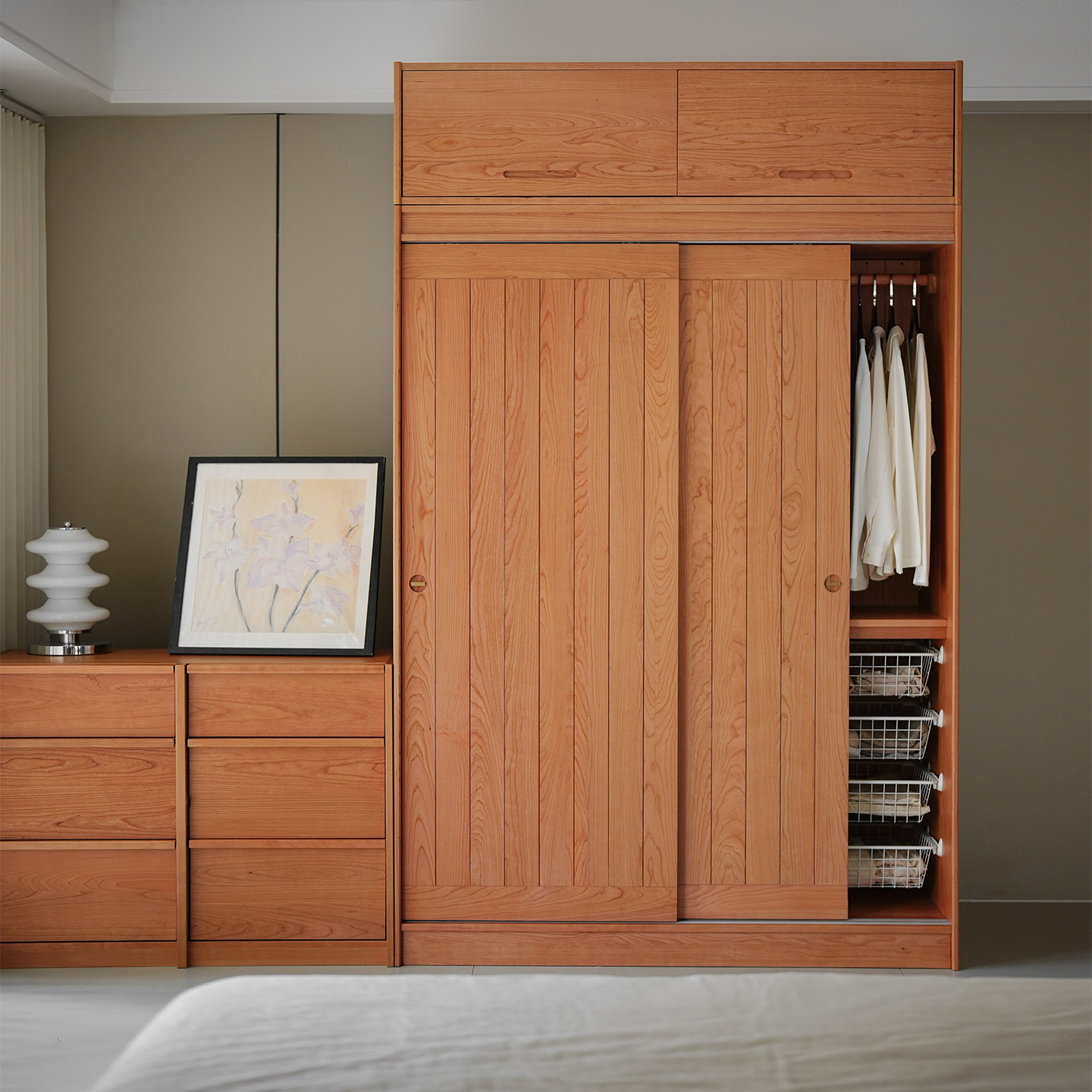 浮生记/大衣柜移门家用小户型卧室全实木衣柜樱桃木组合整体定制