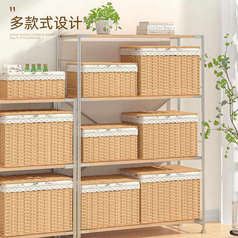 编织收纳箱衣服收纳筐大容量衣物整理箱装玩具收纳盒家用带盖子箱
