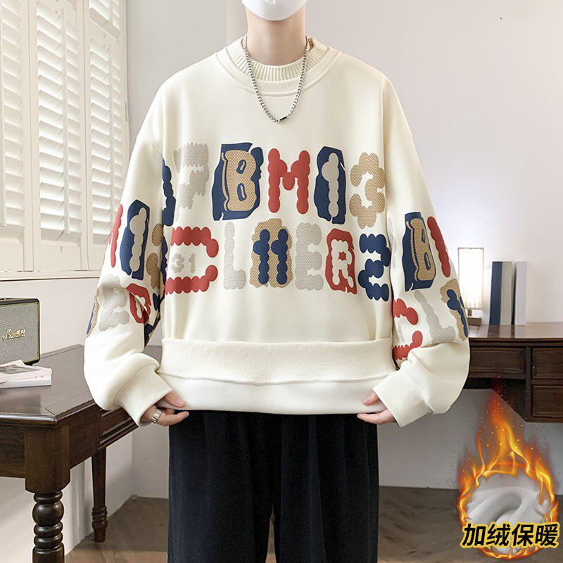 潮牌半高领卫衣男生秋冬季青少年潮流帅气加绒保暖长袖t恤上衣服