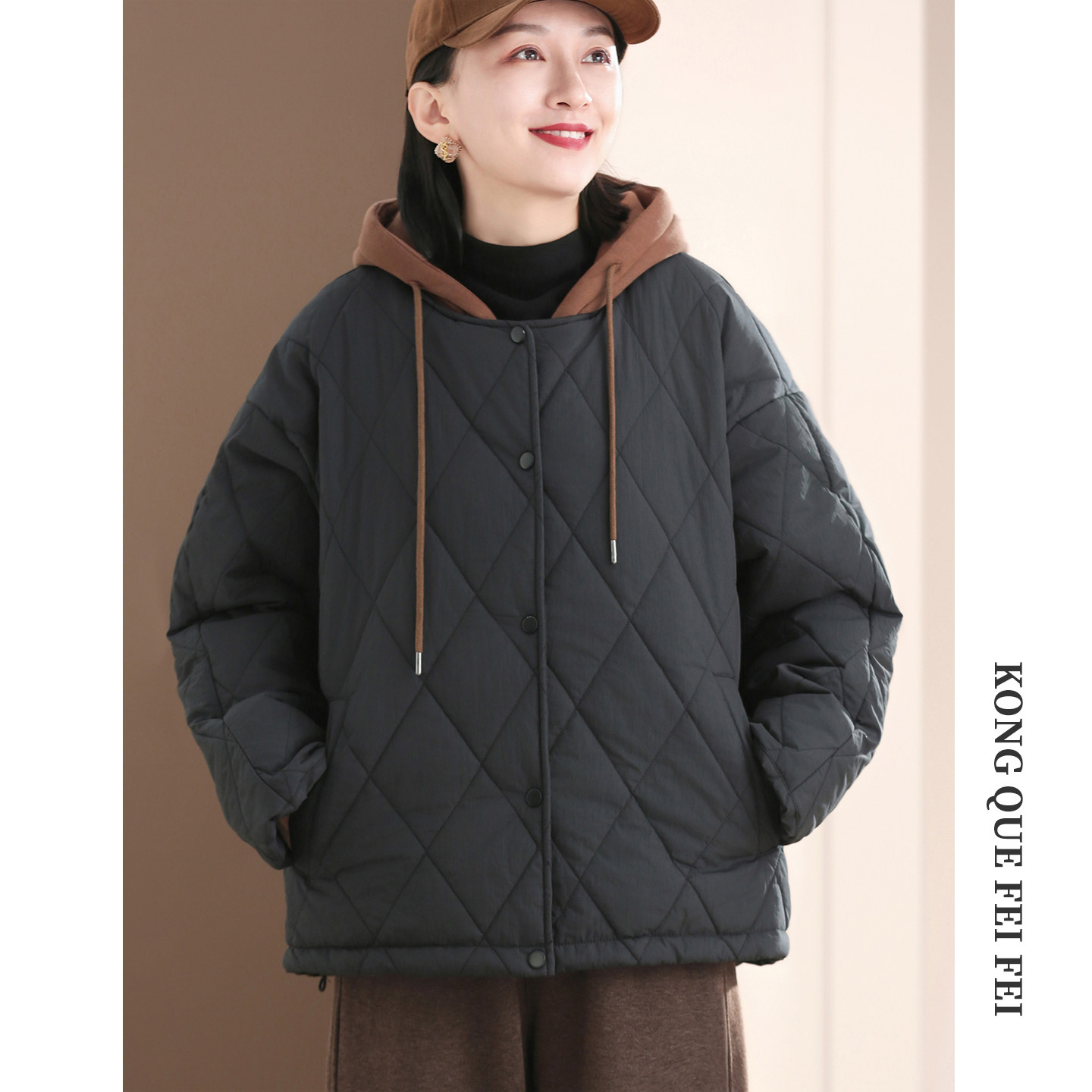 孔雀飞飞 专柜品质 冬装韩版大码遮肉休闲棉衣女款爆款2025新款