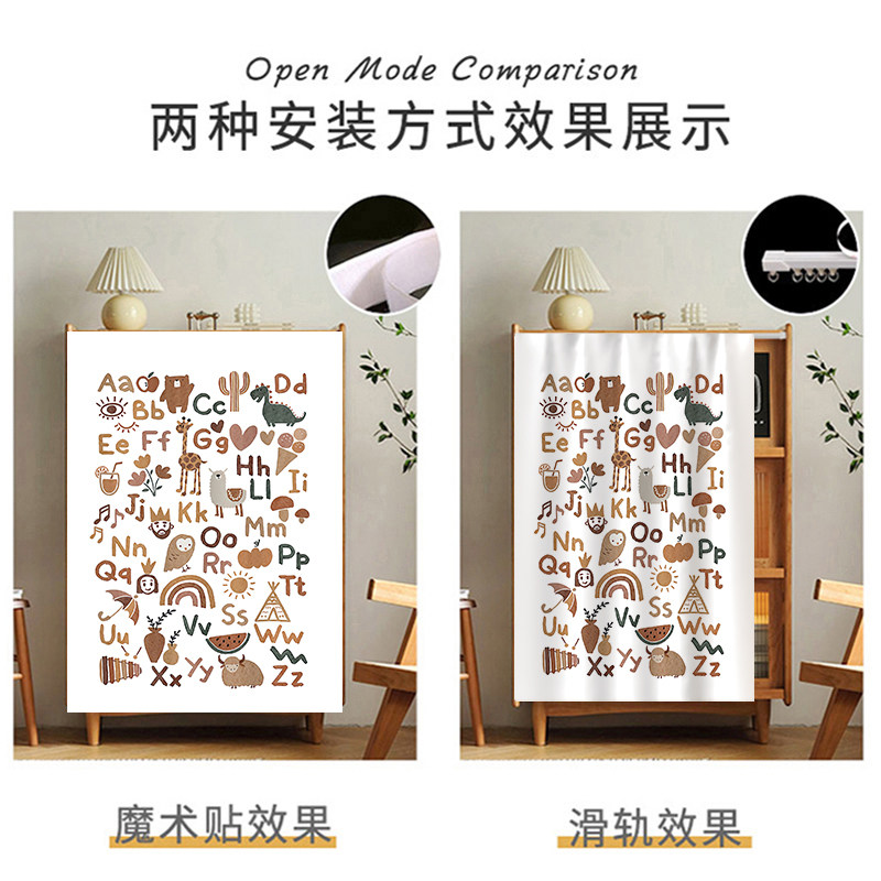 衣柜防尘遮挡帘书架遮挡杂物柜子装饰免打孔滑轨自粘书柜遮丑帘子