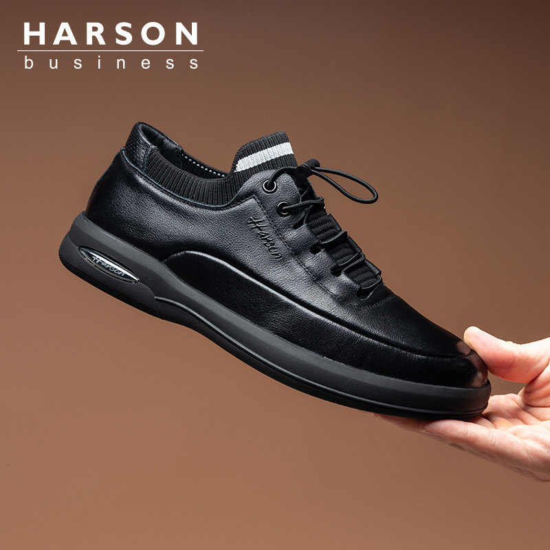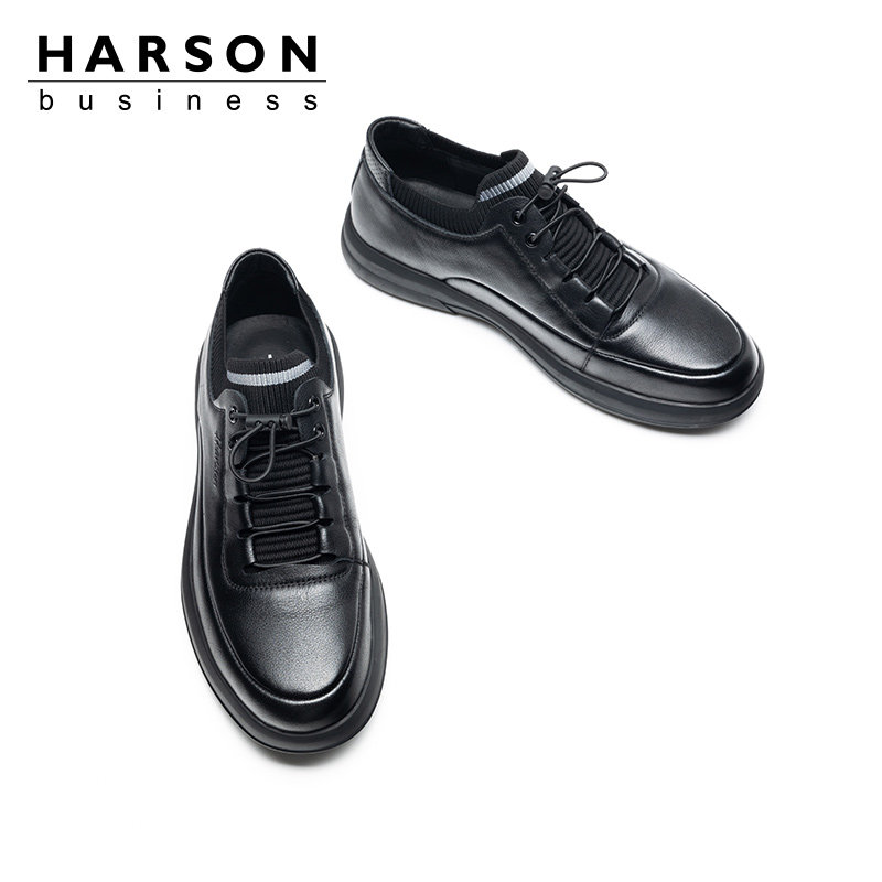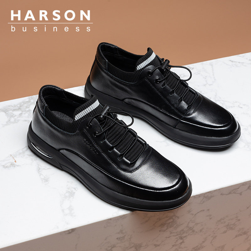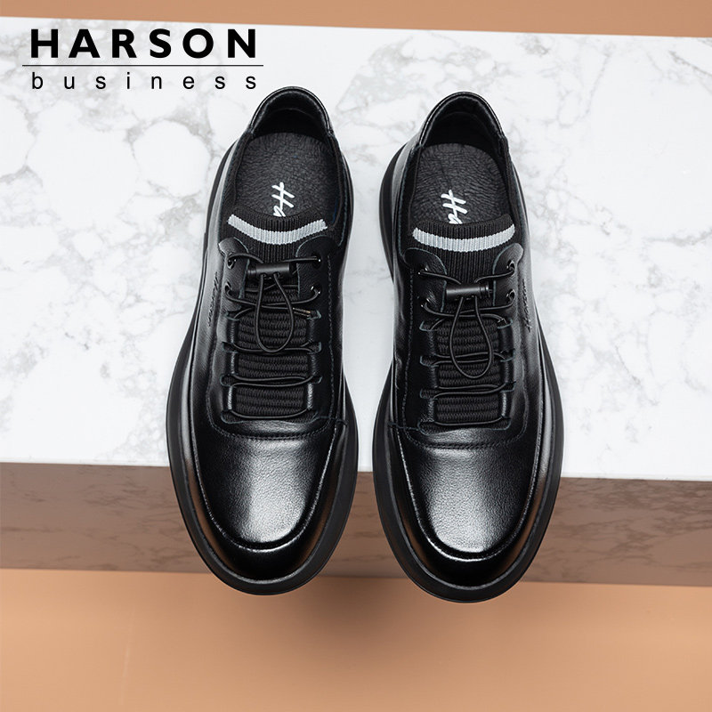 哈森男鞋夏季2026新款男士商务休闲鞋一脚蹬厚底真皮鞋子男款增高