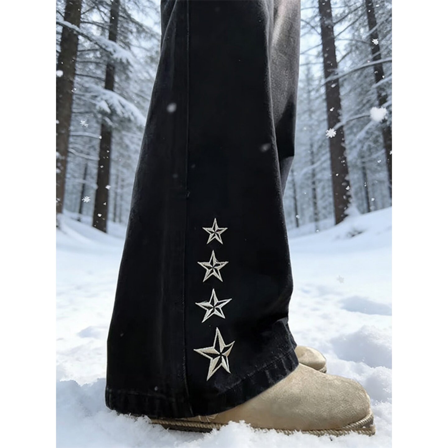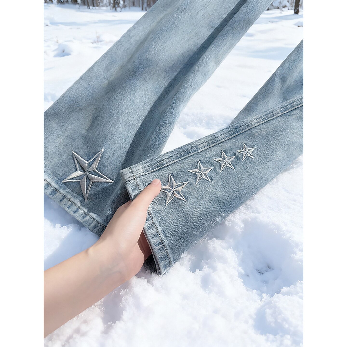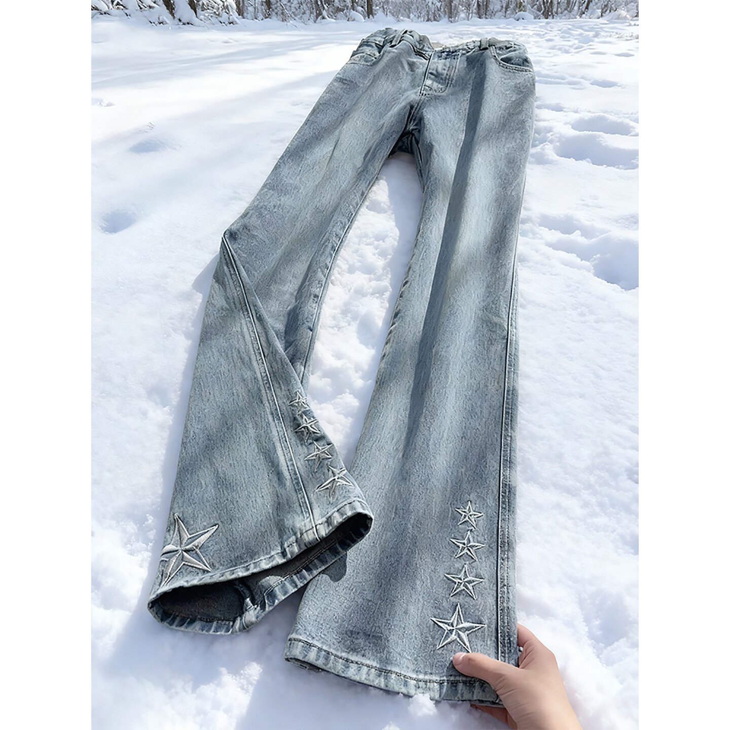 国潮星星刺绣微喇牛仔裤男款美式痞帅复古直筒裤子修身显瘦弯刀裤
