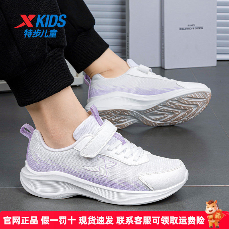 特步儿童女童小白鞋官方正品运动鞋2026年春季学生校园软底跑步鞋
