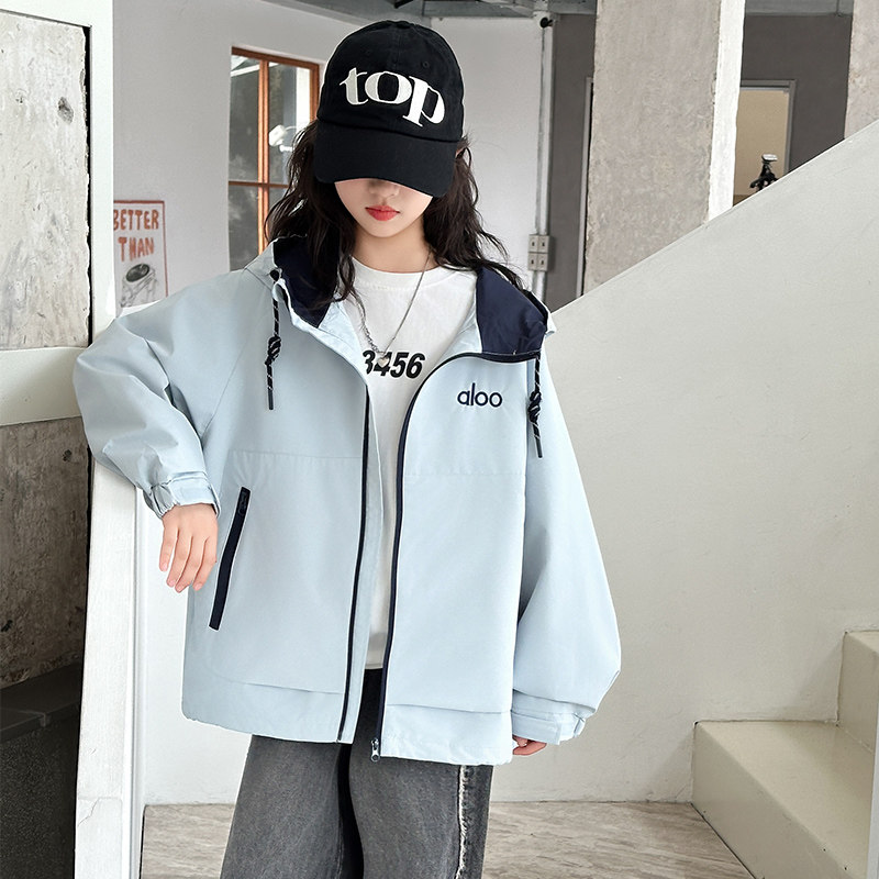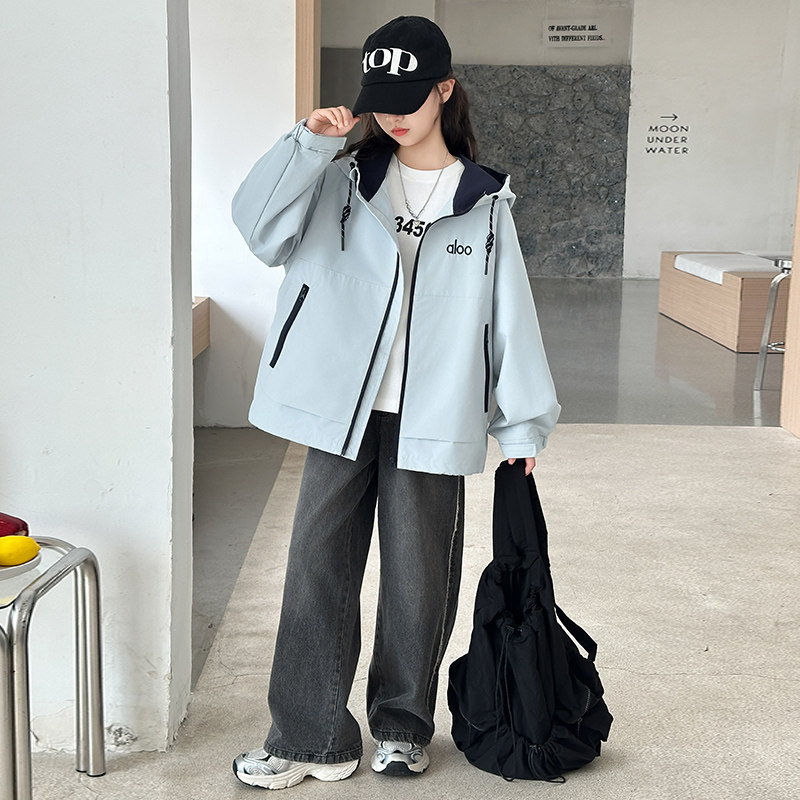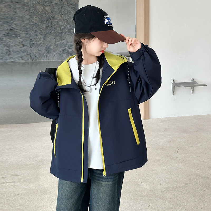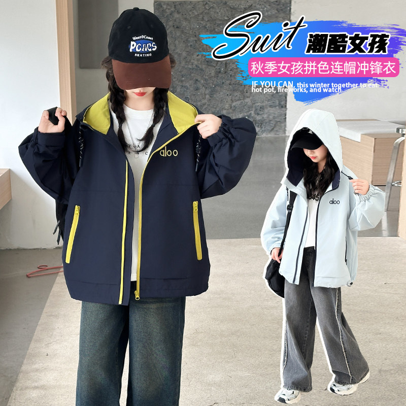 女童春装连帽冲锋衣2026新款中大童洋气时髦拼色外套初中生夹克潮