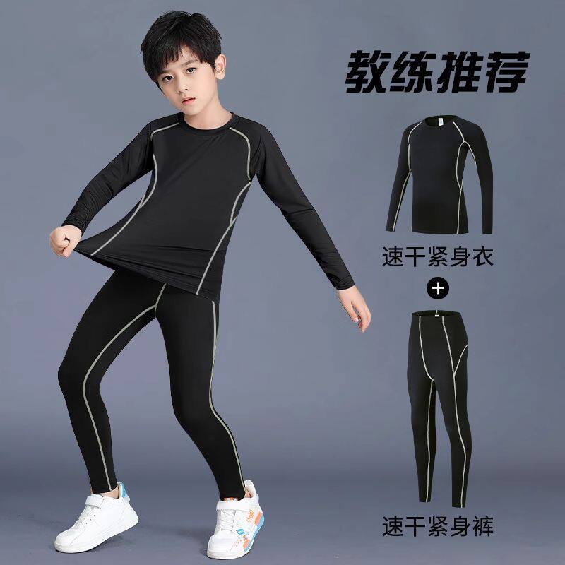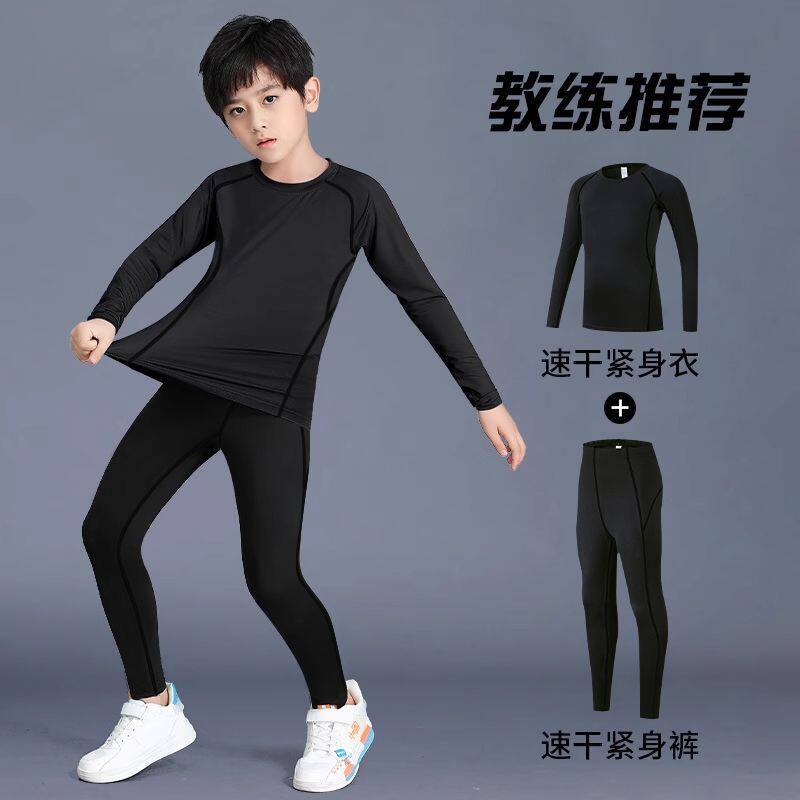 儿童速干衣训练服运动套装男童篮球紧身衣足球打底裤春季健身体能
