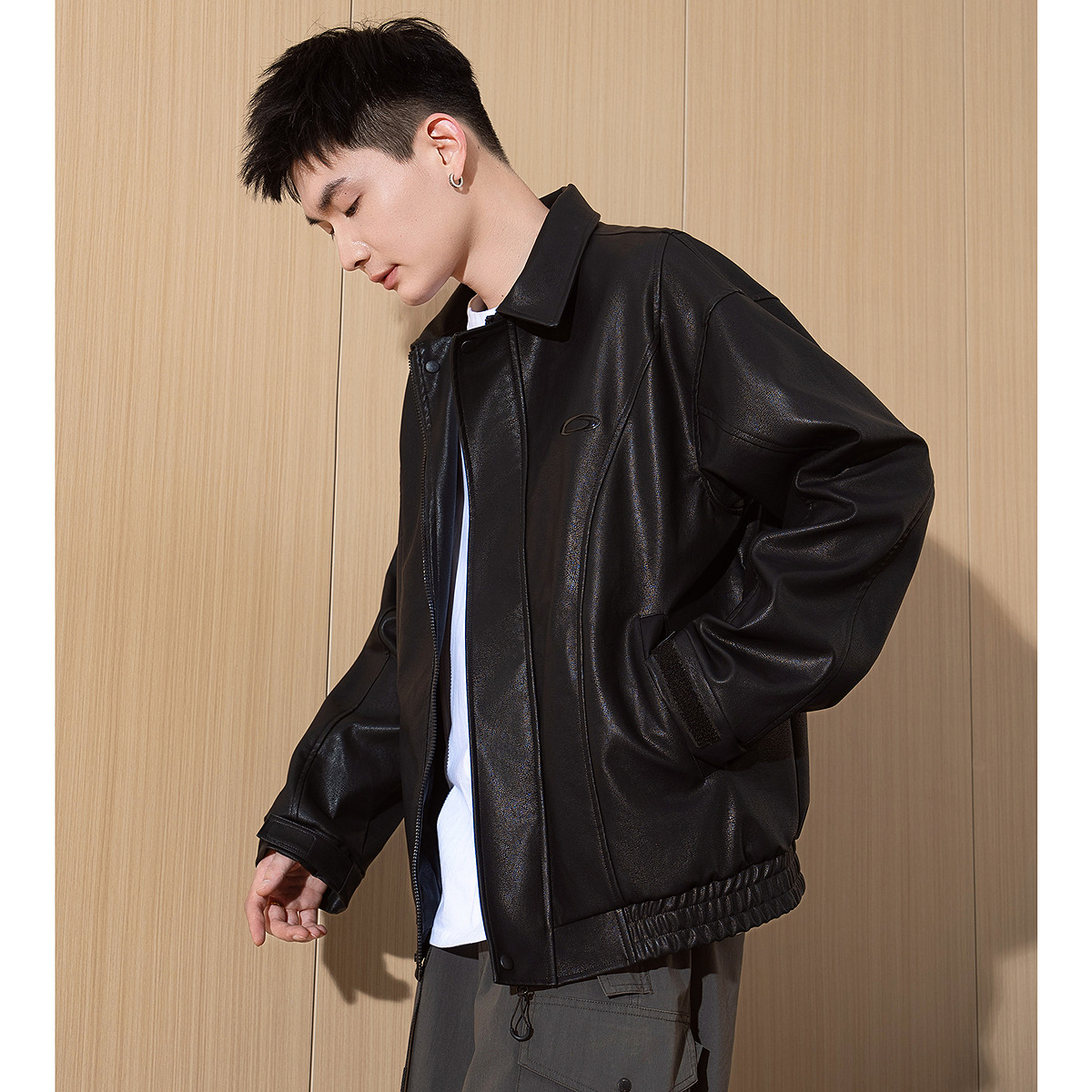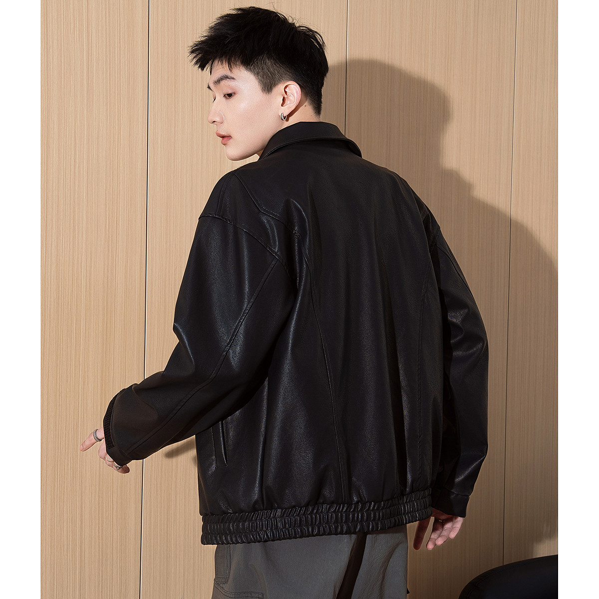 唐狮黑色皮衣外套男款2026春季新款时尚潮流宽松美式机车风皮夹克