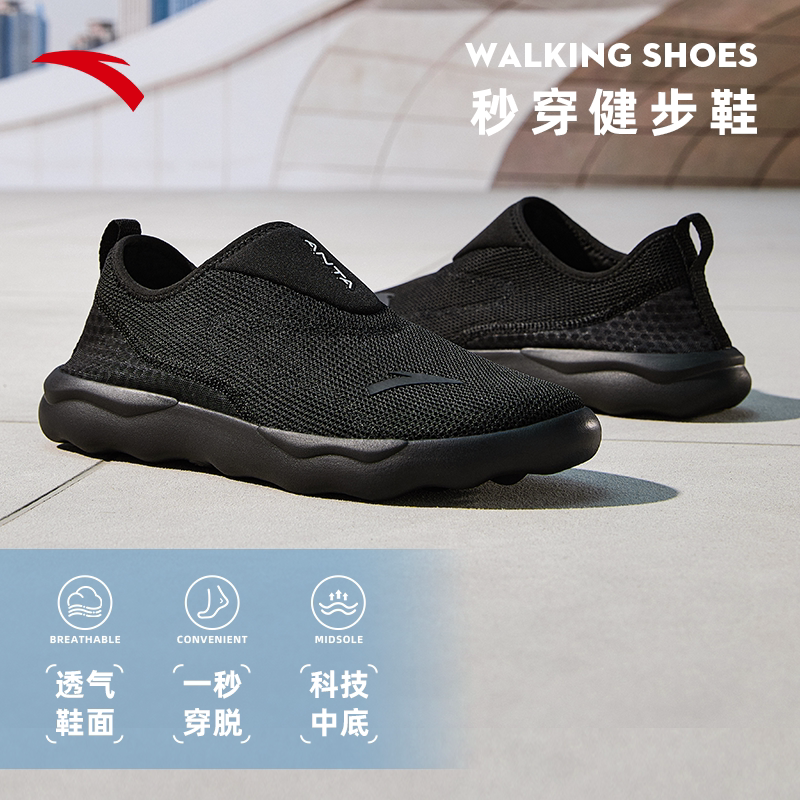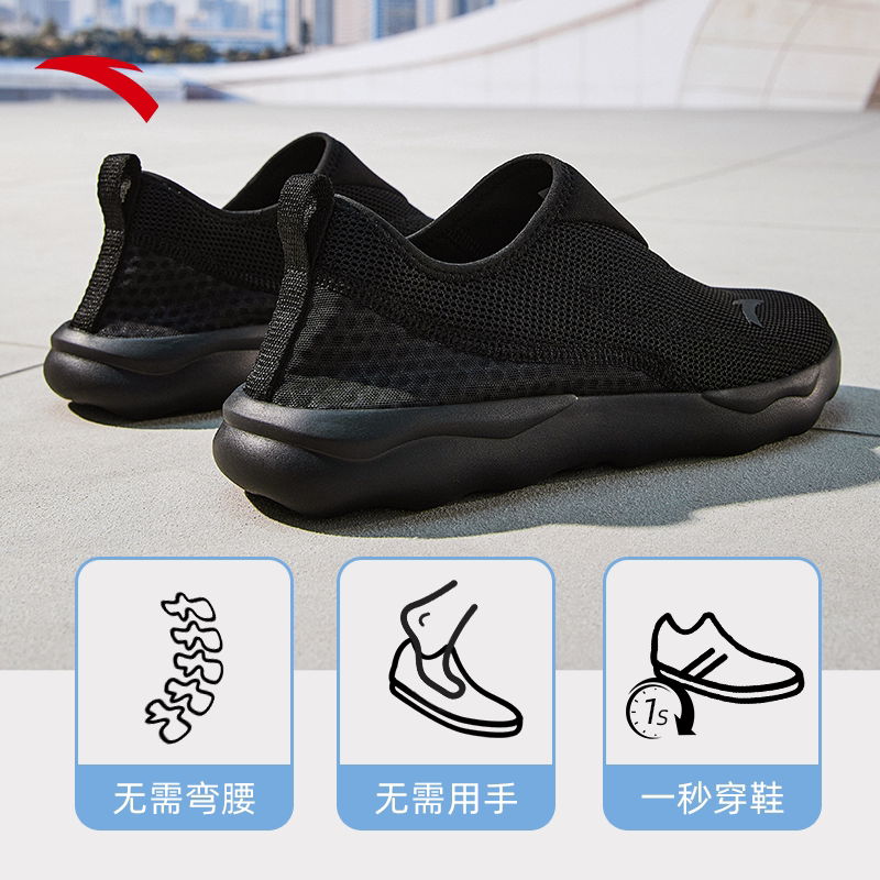 安踏一脚蹬休闲鞋男鞋夏季新款透气网面懒人鞋平底板鞋男款运动鞋