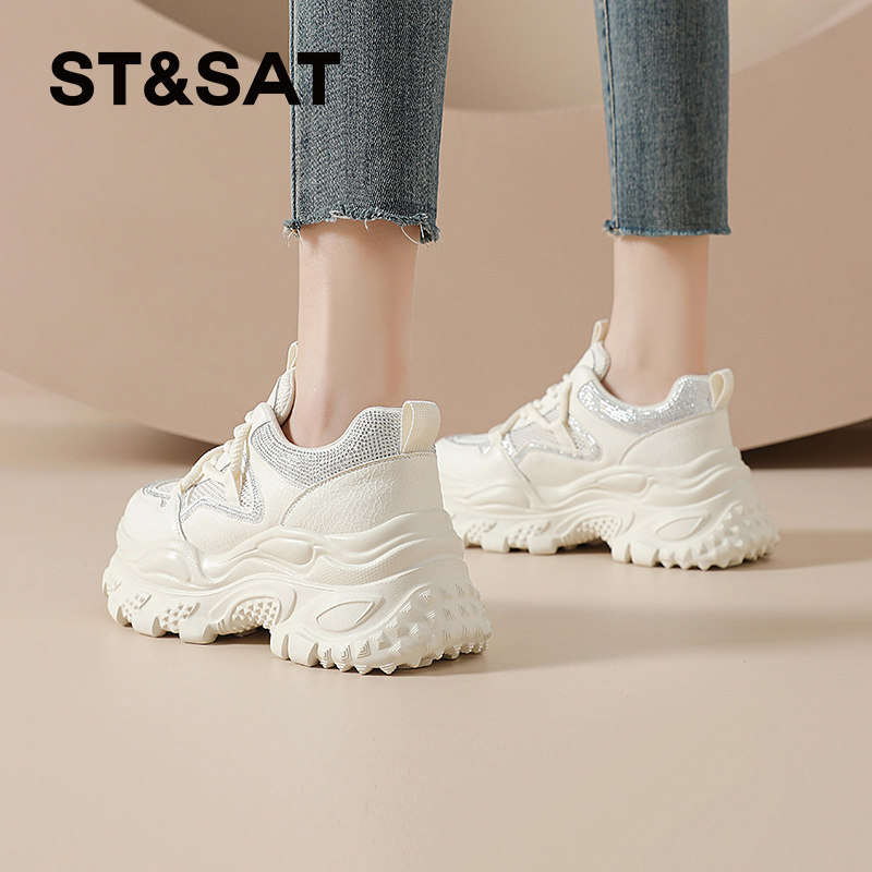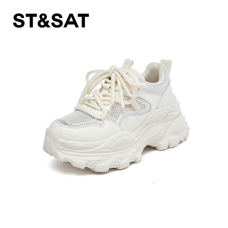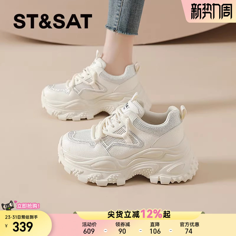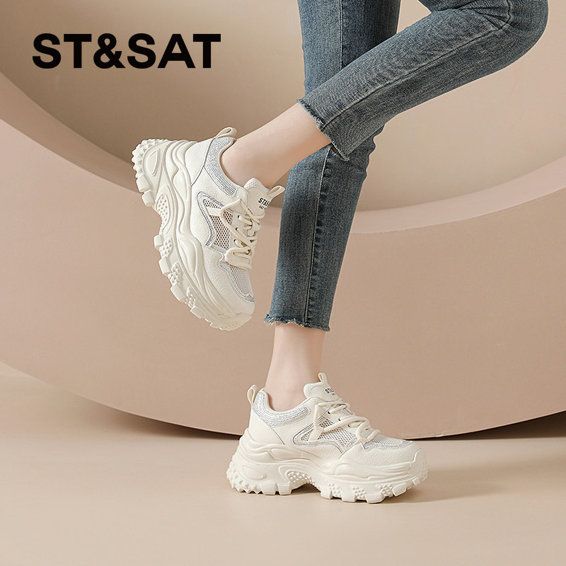 星期六老爹鞋女款新款夏季透气网面女士休闲运动鞋厚底增高小白鞋