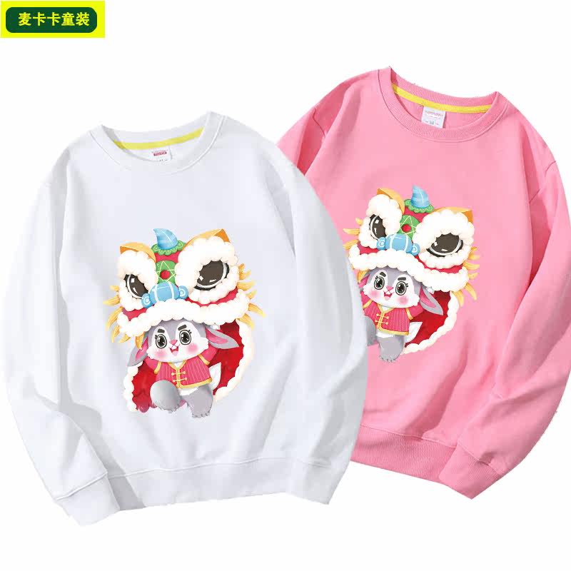 兔年过年衣服童装2023新款金兔招财男女童红色卫衣薄款儿童秋款潮
