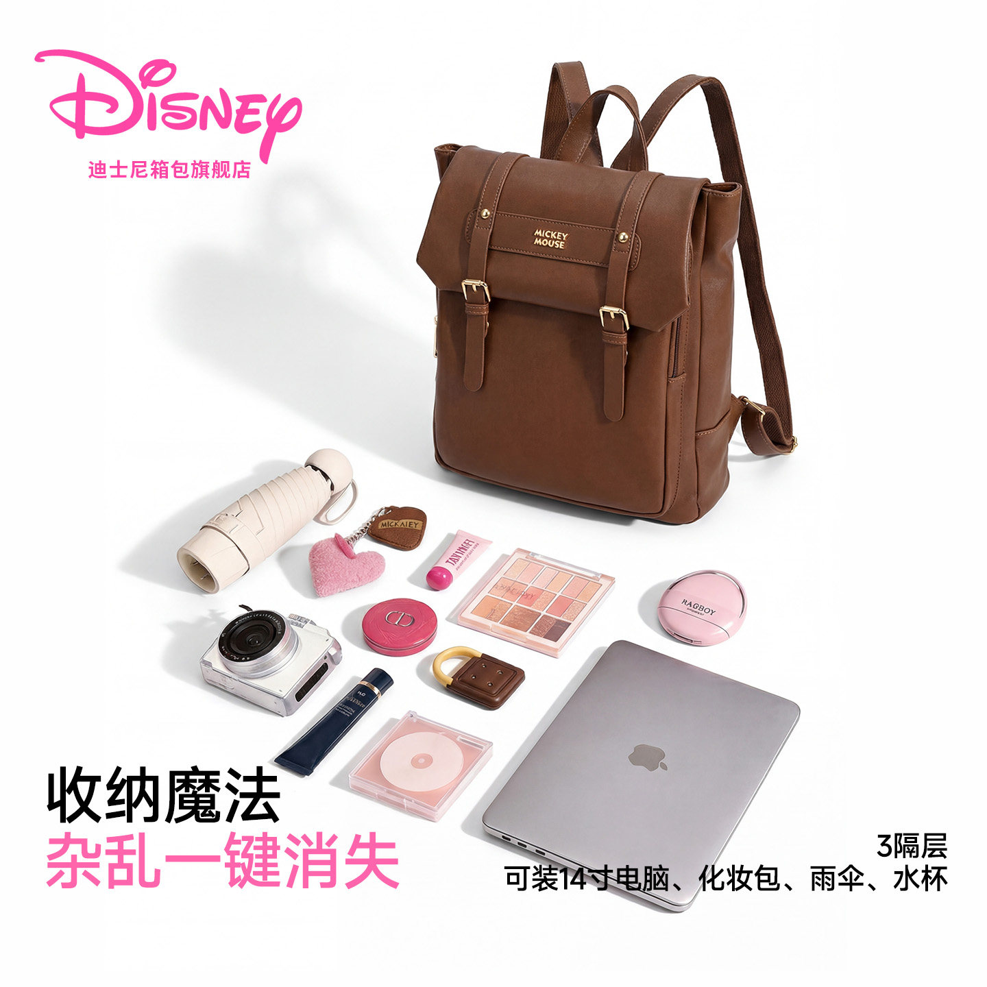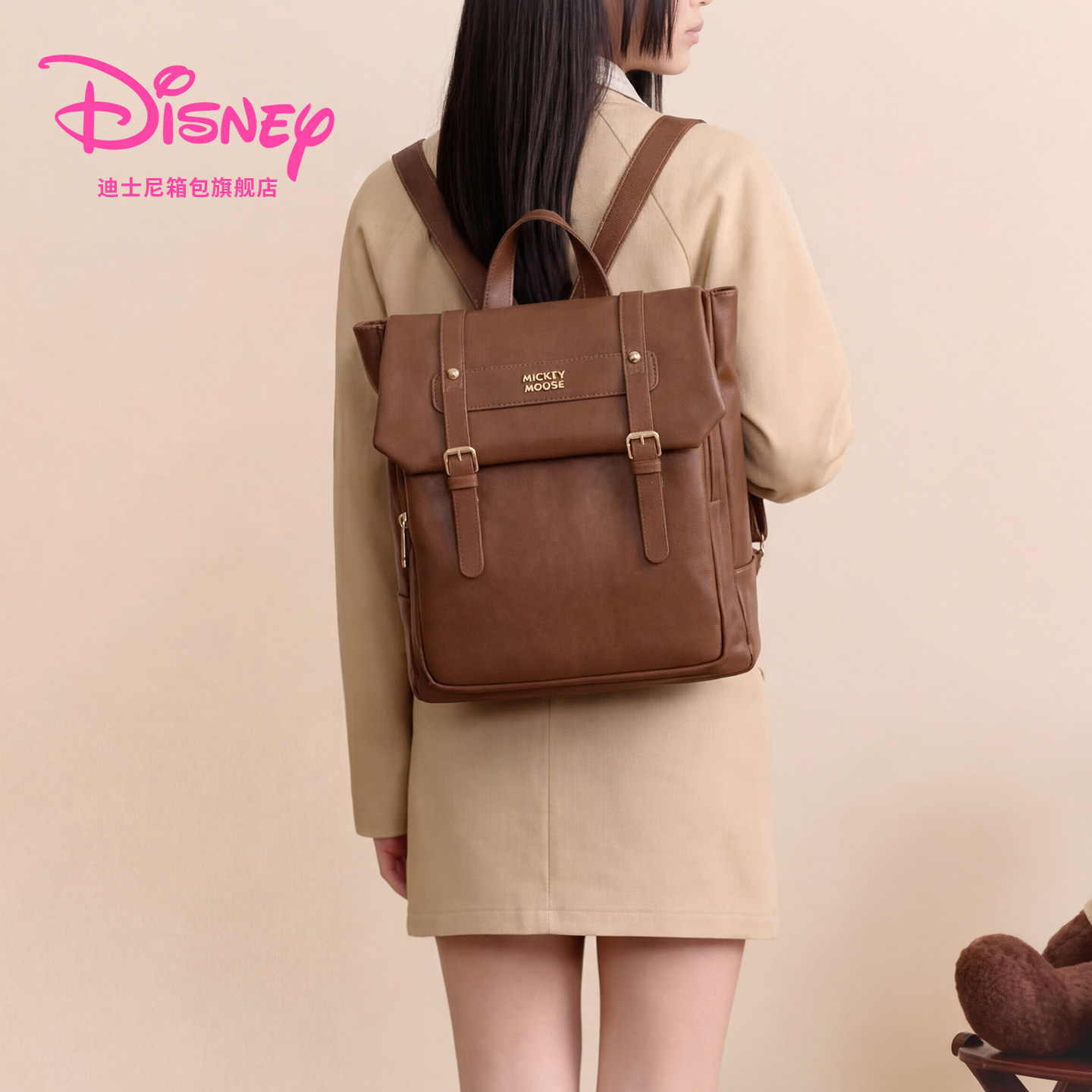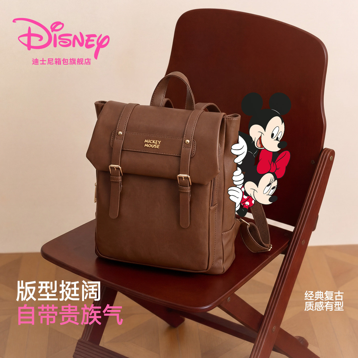 迪士尼2026新通勤双肩包女生复古斜挎背包大容量电脑包旅行书包女
