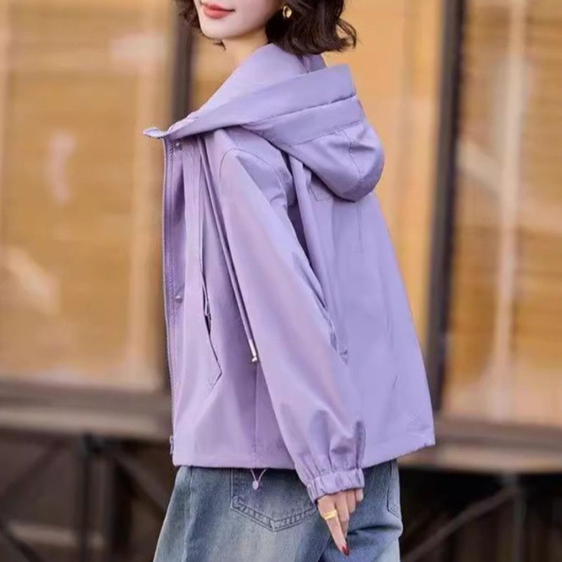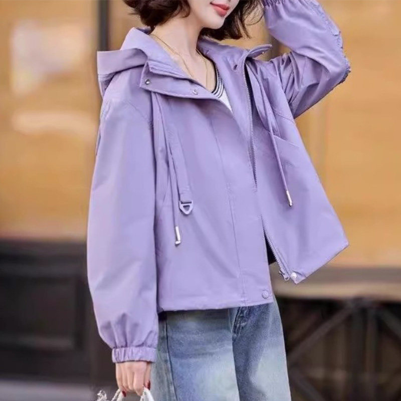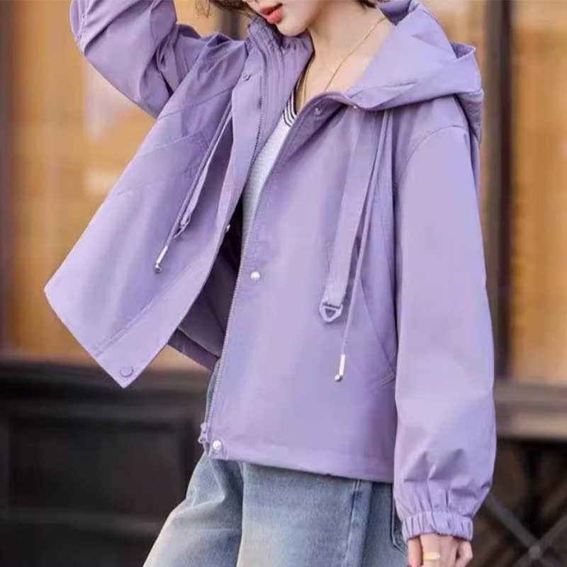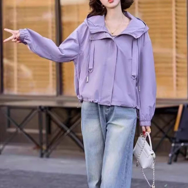 紫色冲锋衣女款春秋薄外套2026新款初春洋气百搭休闲连帽工装夹克