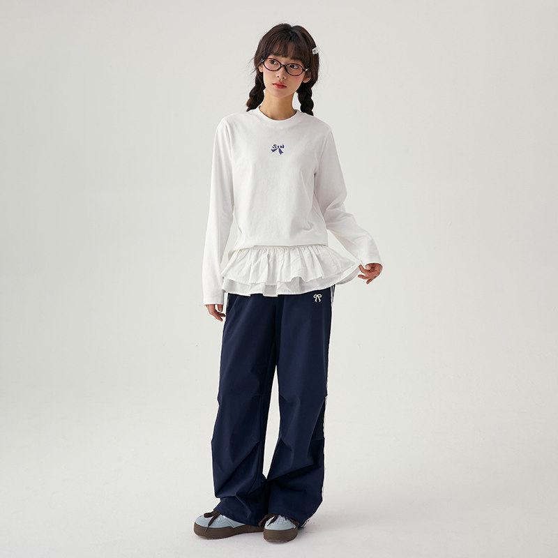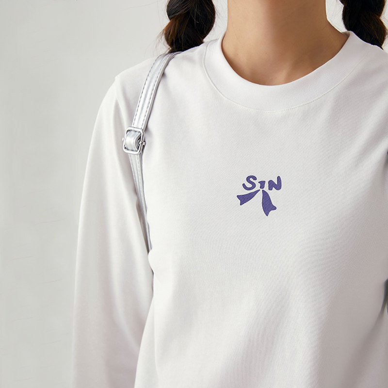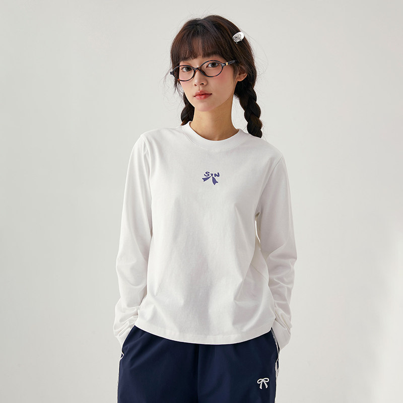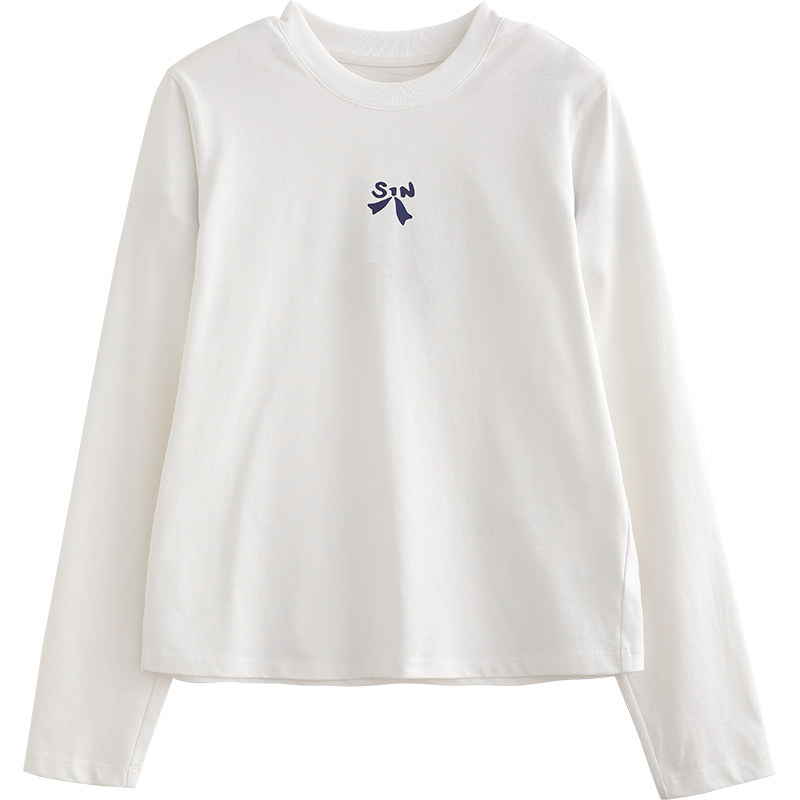诺诺公主S1N初中生韩系正肩修身蝴蝶结T恤女春新款长袖上衣打底衫