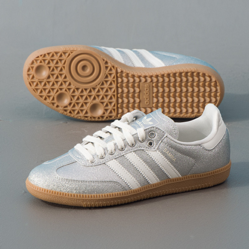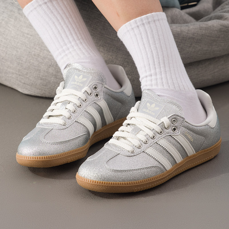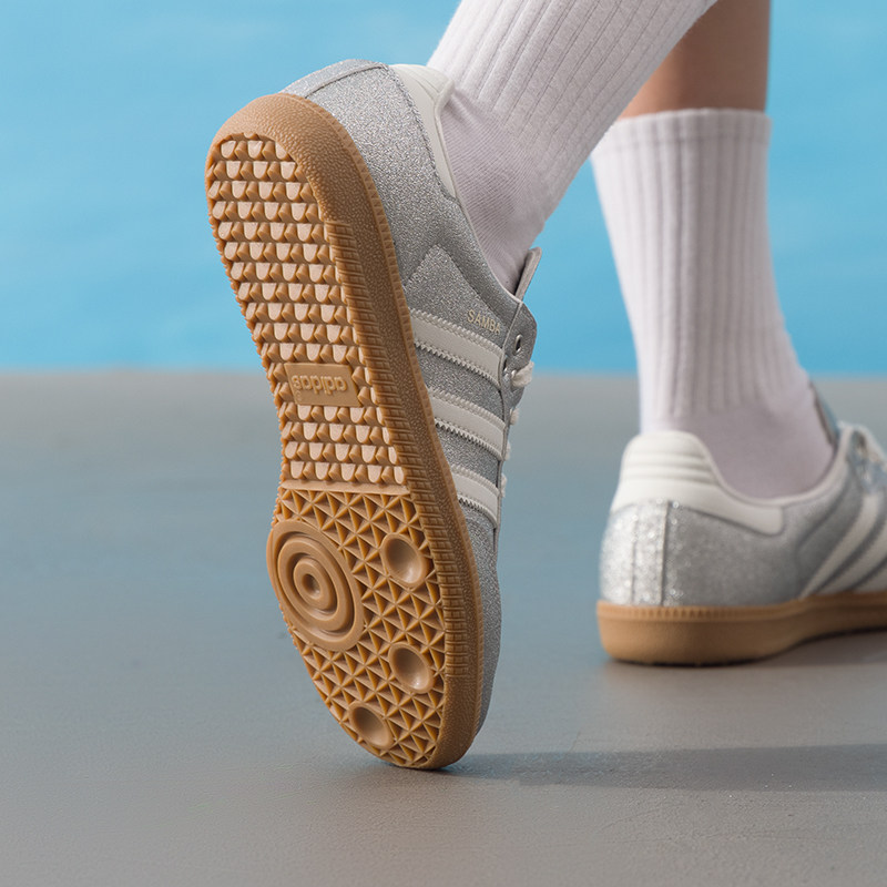 阿迪达斯三叶草女鞋春季新款SAMBA德训鞋银色时尚休闲鞋T头运动鞋