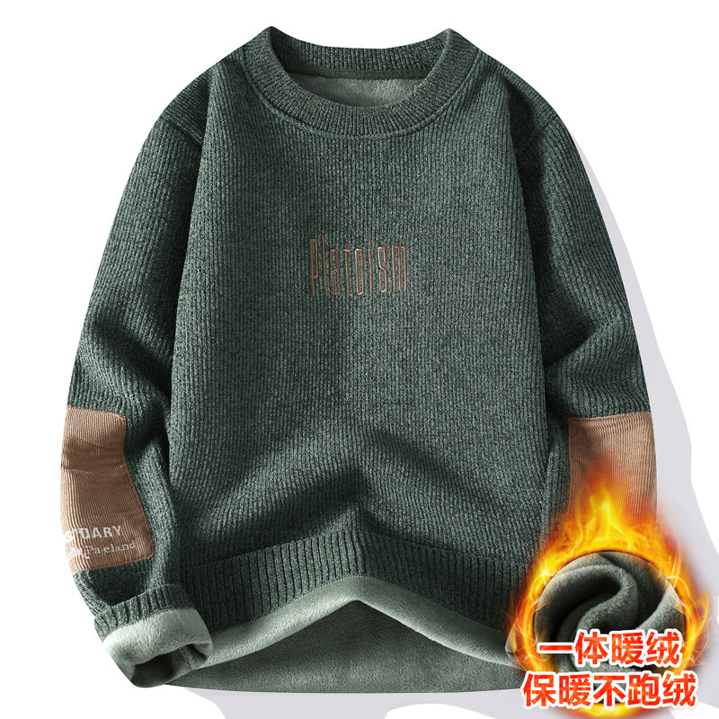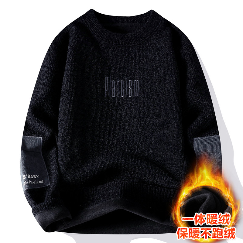 一体绒圆领卫衣男生秋冬季加绒加厚青少年初中高中学生针织打底衫