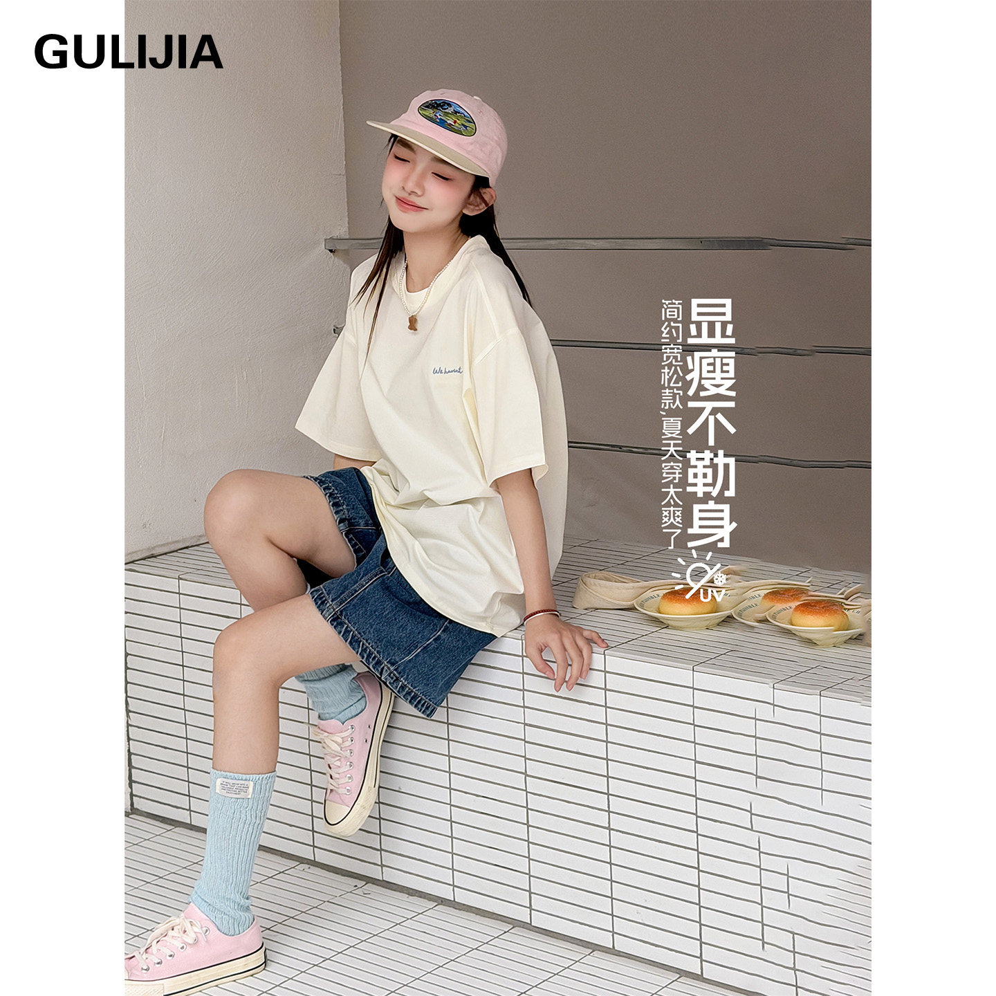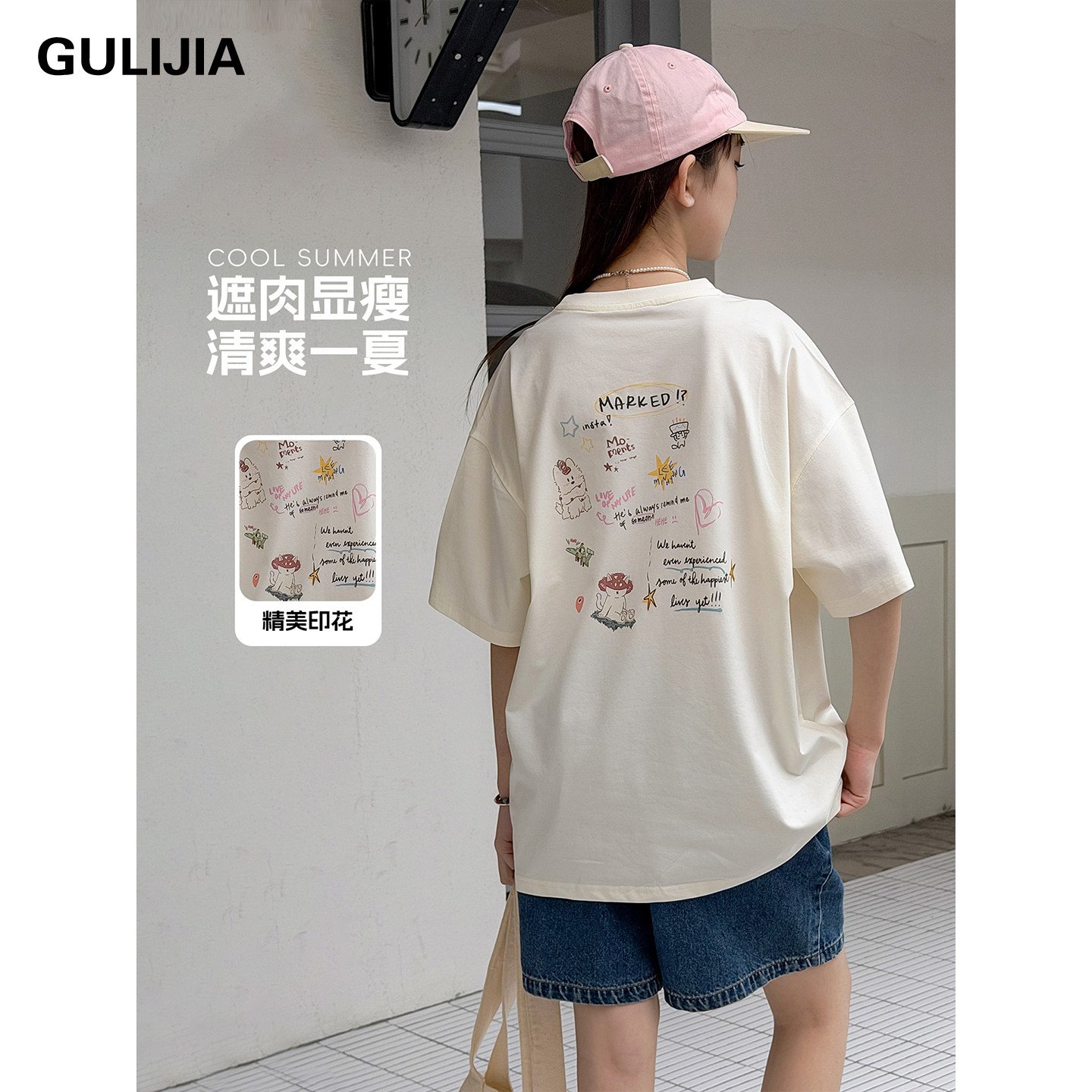 古力家女大童短袖T恤2026夏季新款纯棉宽松初中学生女孩洋气上衣
