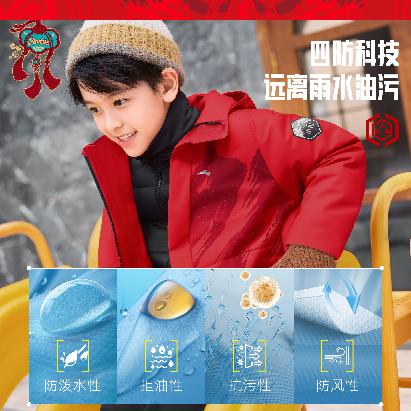 安踏冰甲羽绒六度芯安踏儿童热返科技冬季铂晶羽绒服马年红色新年
