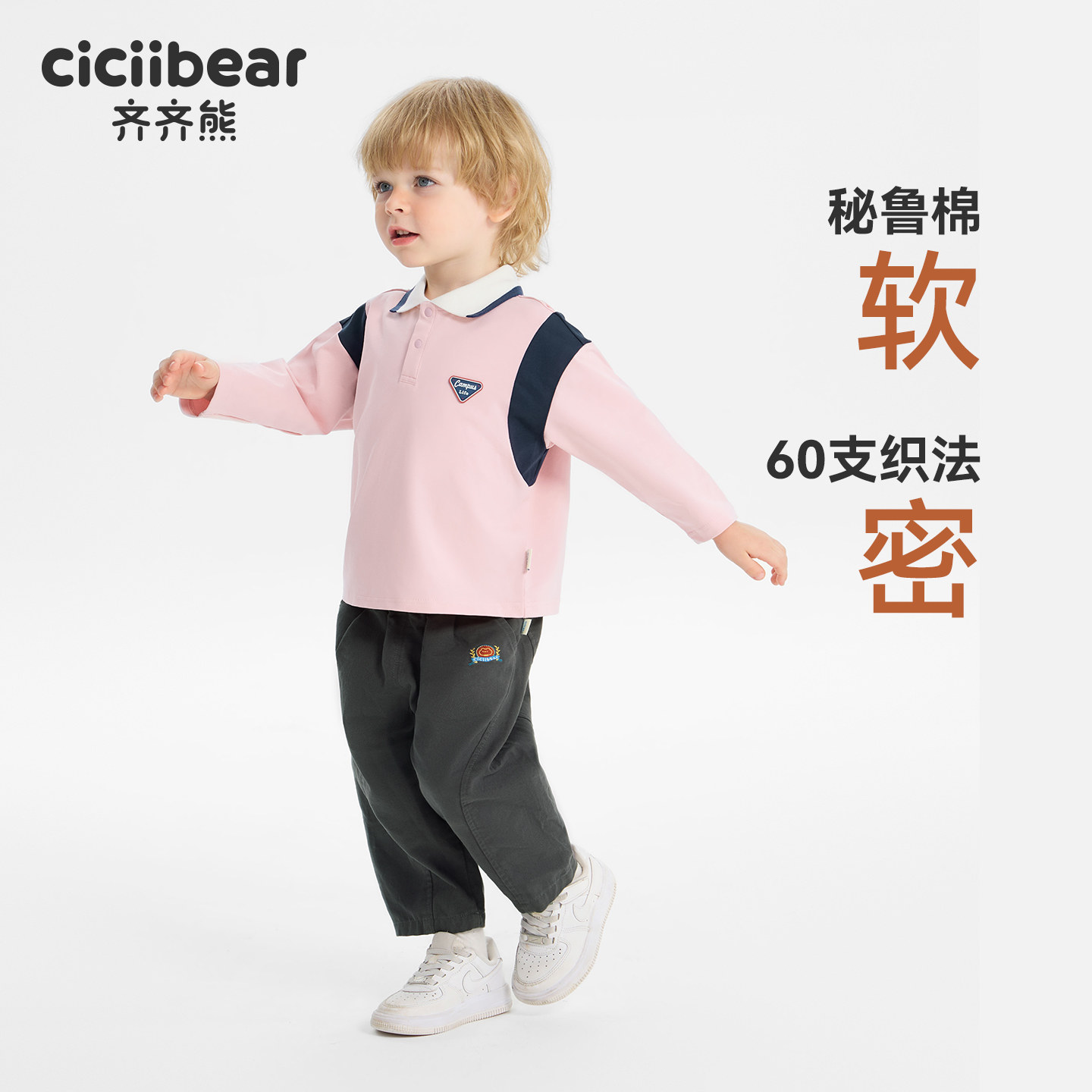 [学院风]齐齐熊男童t恤长袖宝宝polo衫翻领儿童上衣童装衣服女童