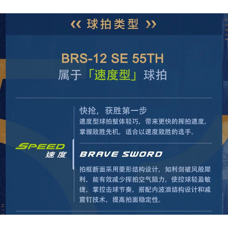 官方正品victor胜利羽毛球拍速度型BRS亮剑12SE进攻55周年纪念版