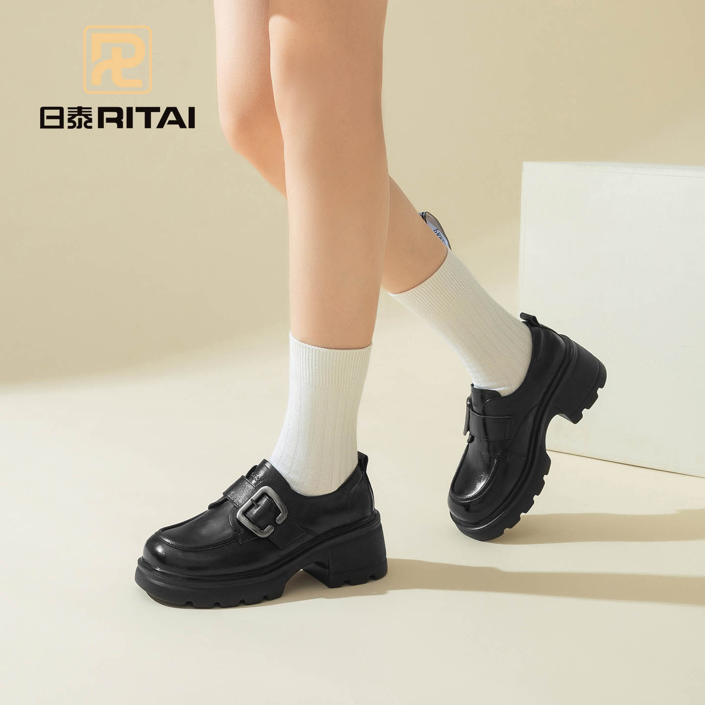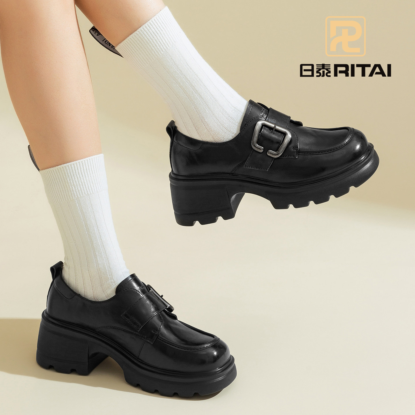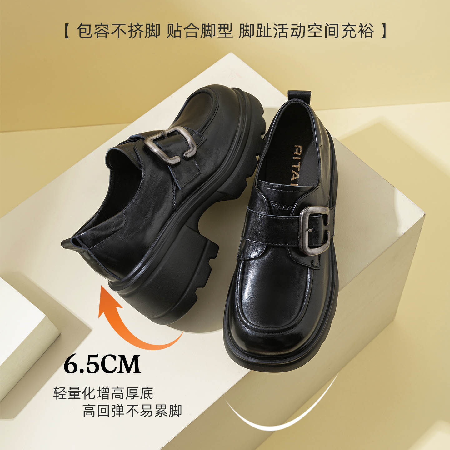 日泰真皮厚底乐福鞋女春季新款小个子增高鞋学院风粗跟通勤女单鞋