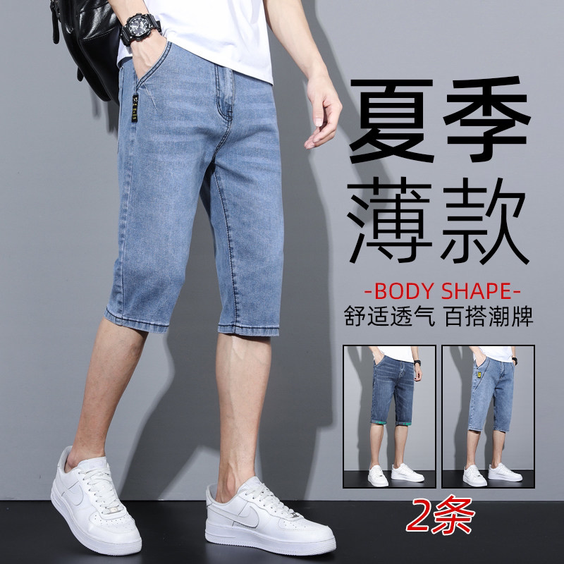 春夏季薄款牛仔短裤男七分裤男士宽松休闲青年中裤休闲痞帅男款