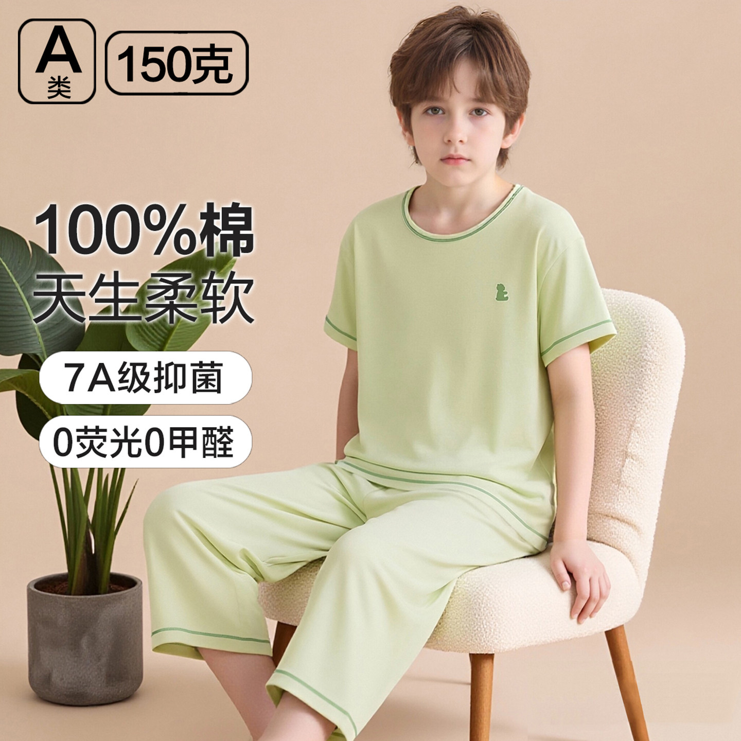儿童睡衣纯棉a类春夏季薄款女童家居服薄款短袖t恤男童空调服套装