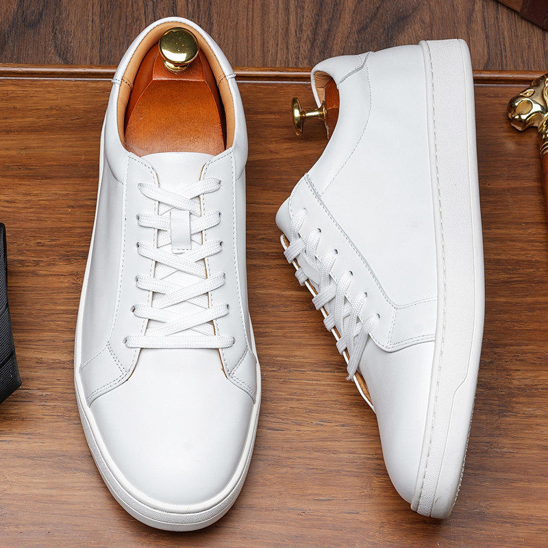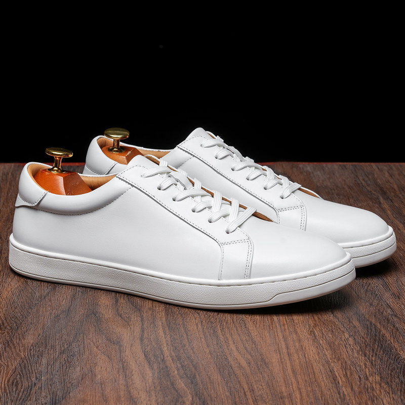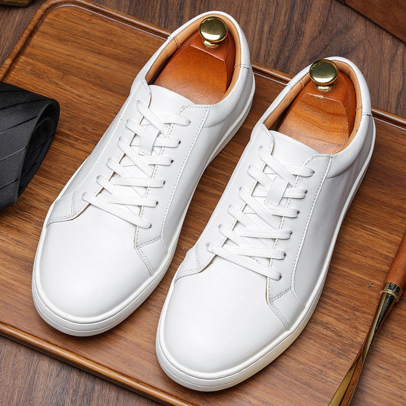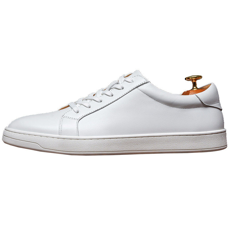 手工头层牛皮小白鞋男士真皮板鞋夏季百搭商务休闲 西装白色皮鞋