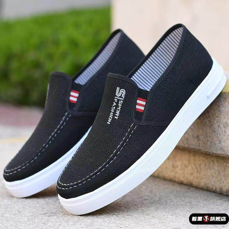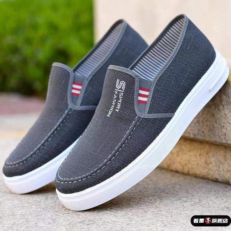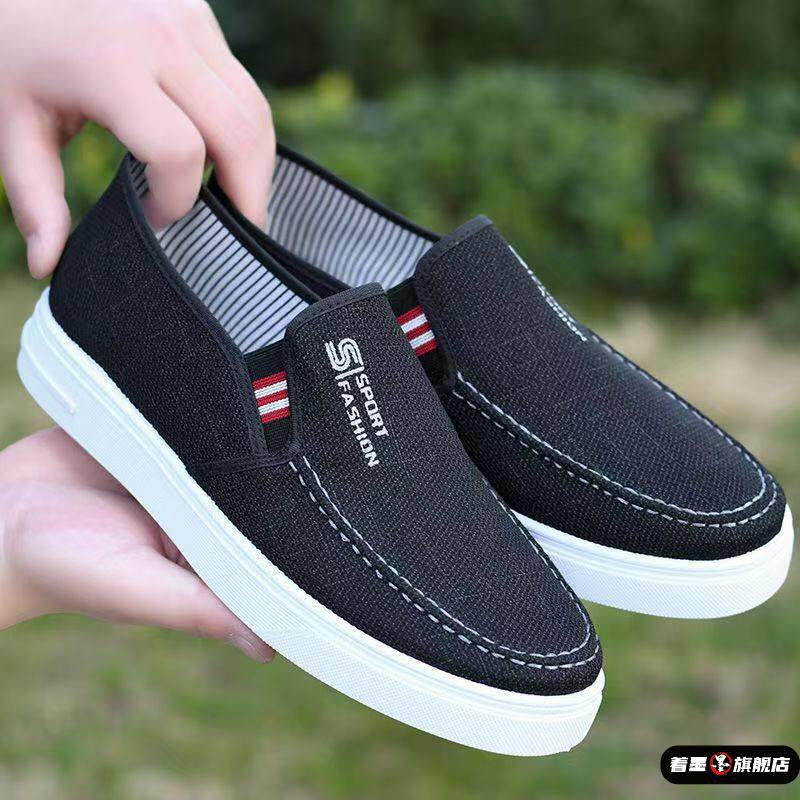 2025男鞋春季休闲鞋新款帆布鞋男款轻便透气百搭一脚蹬老北京布鞋