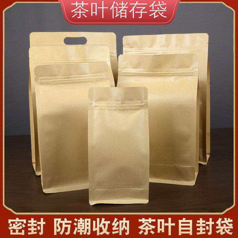 加厚牛皮纸茶叶自封袋散茶包装袋零食铝箔袋干果特产八边封密封袋