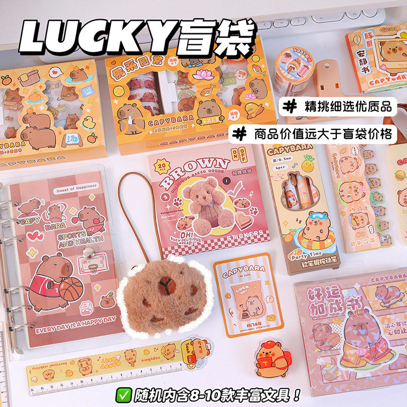 卡皮巴拉文具手帐盲袋可爱六一儿童节礼物大礼包创意幸运惊喜盒