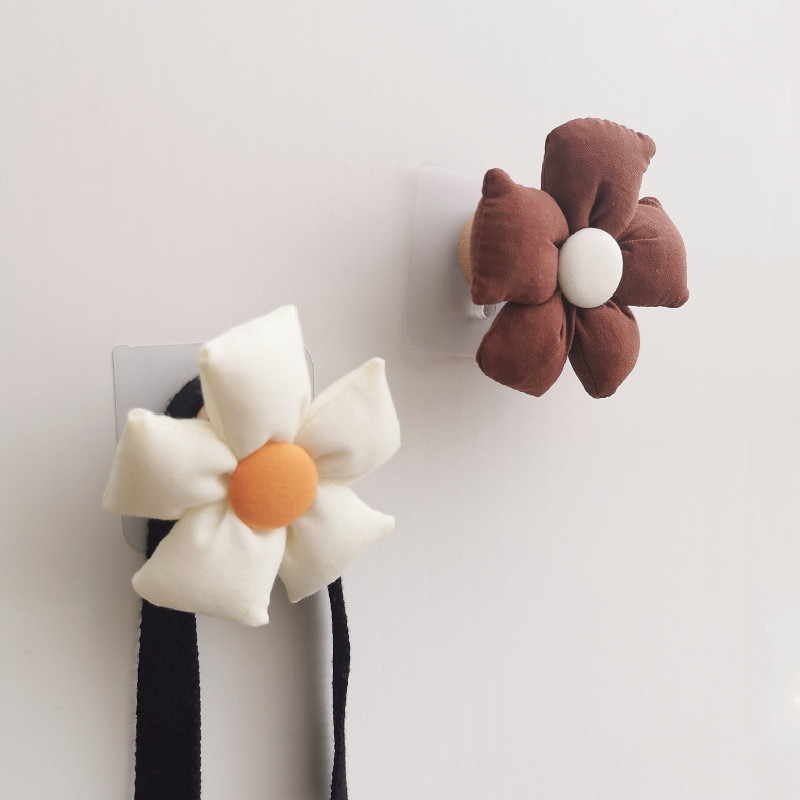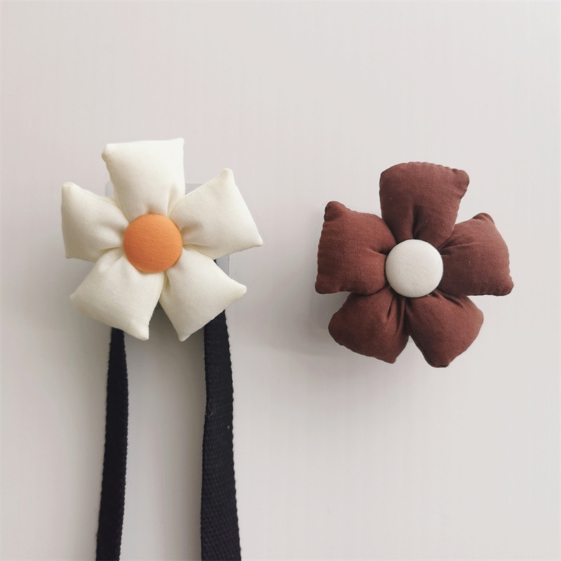 ins布艺花朵家居木质墙面装饰挂钩儿童房装扮墙壁挂衣橱柜门粘钩