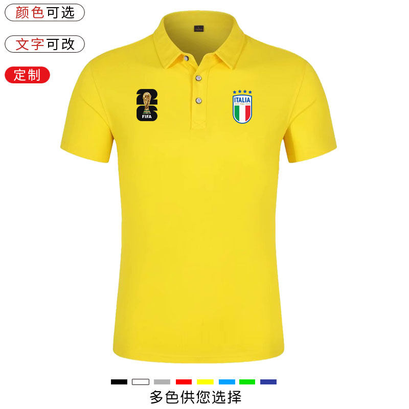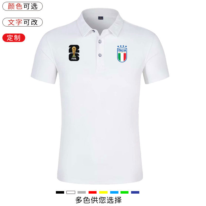 美加墨足球世界杯意大利队polo衫ITALIA意大利队足球运动翻领短袖
