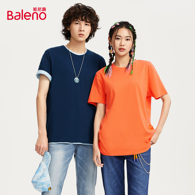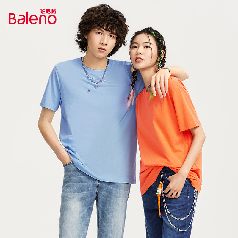 班尼路纯棉短袖T恤男士宽松纯色打底衫女100%纯棉上衣青少年男装Z