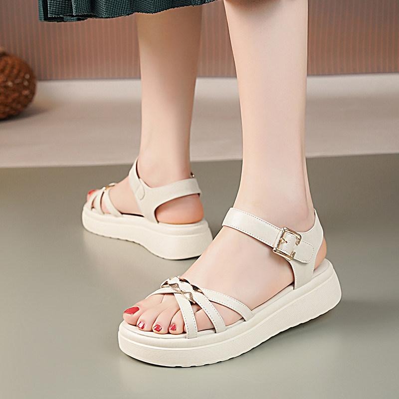厚底凉鞋夏季坡跟平底软底软面舒适大码女鞋不累脚轻便防滑妈妈鞋