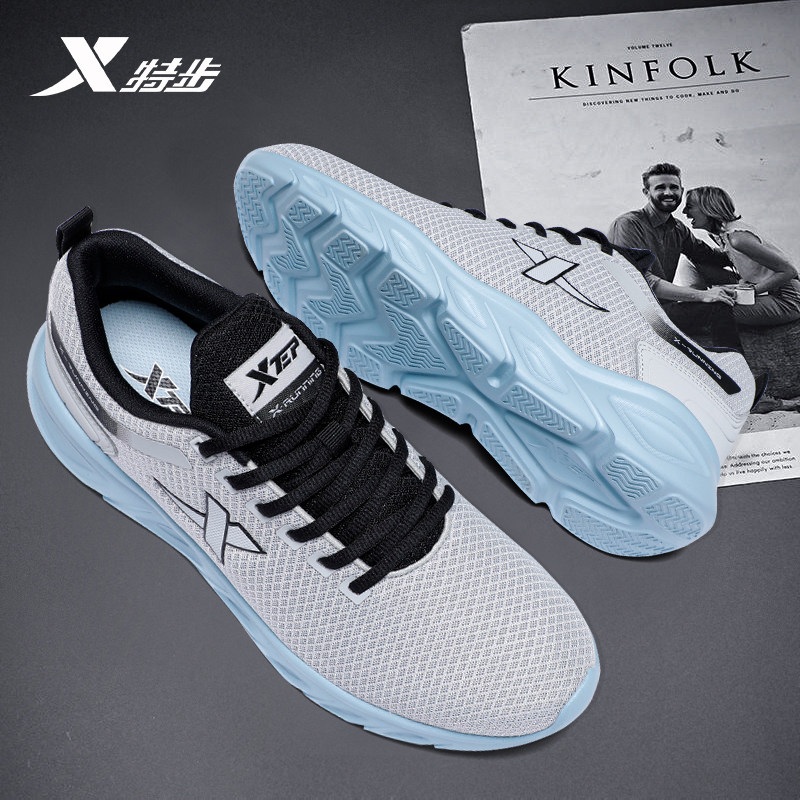特步男鞋官方正品轻便软底缓震运动鞋网面透气休闲鞋体考训练跑鞋
