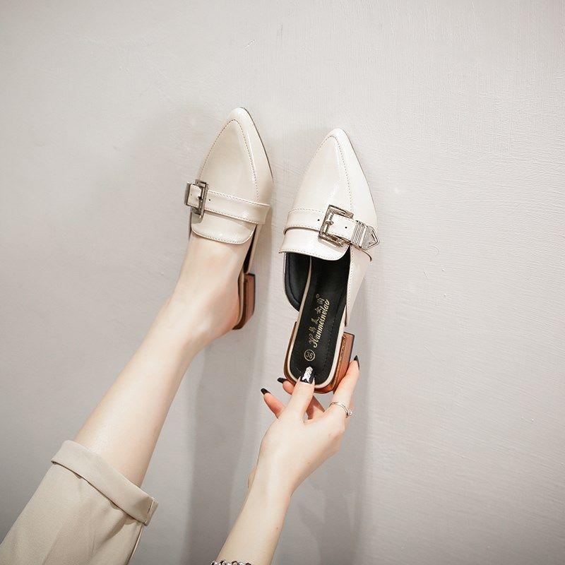 凉拖包头半拖鞋女中跟小皮鞋女配裙子大码女鞋春款新款潮41-43码
