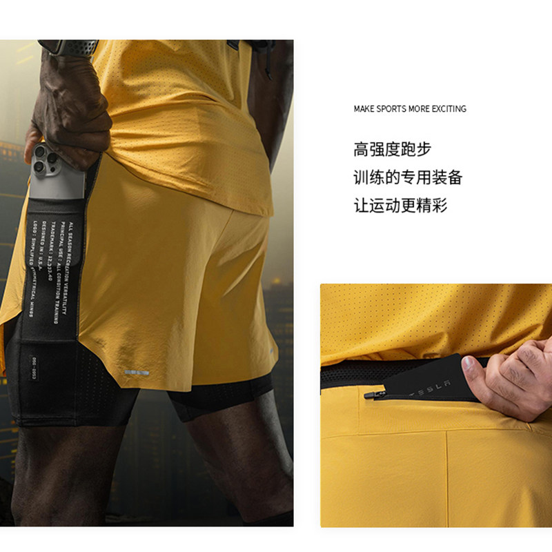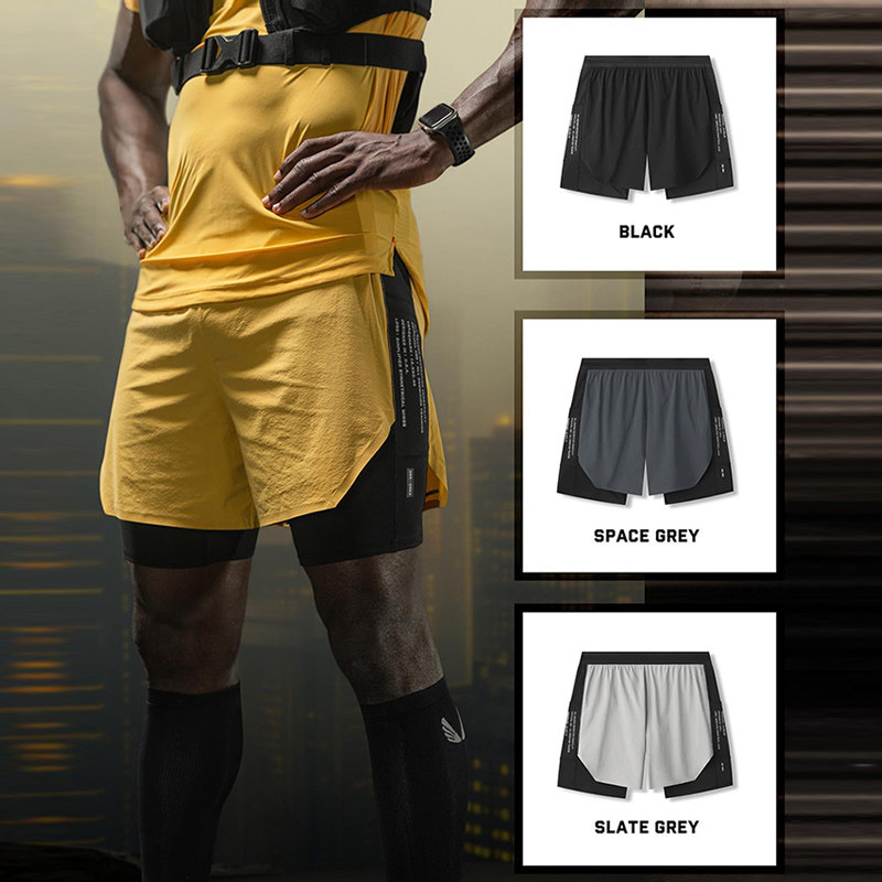 ASRV运动健身跑步短裤双层速干假两件压缩马拉松带内衬四分裤子男